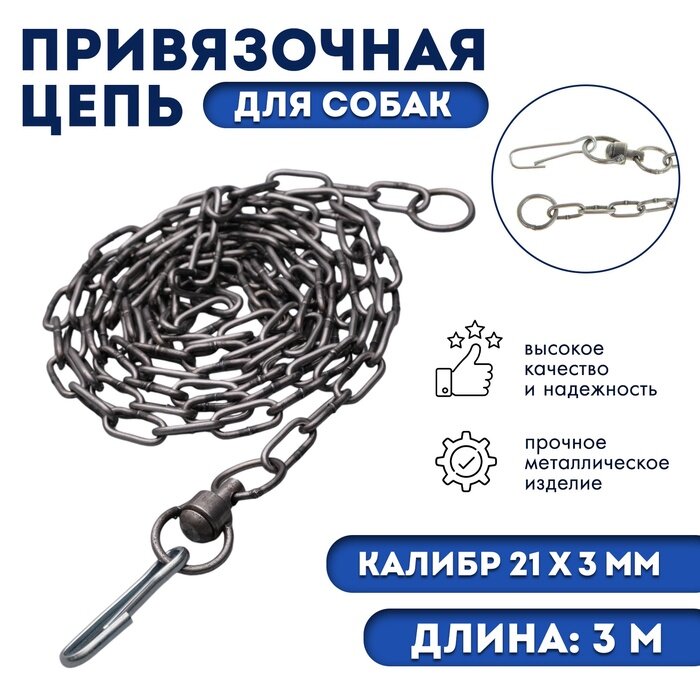 Цепь для привязи собак, 3 м, калибр 3 х 21 мм, черная 1110851 интересное: