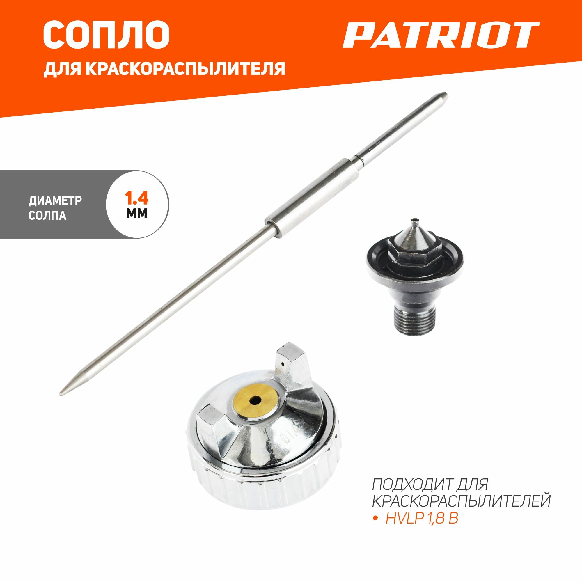 Сопло (ремкомплект) для краскораспылителя Patriot NHV 1.4 B, сопло 1,4 мм, игла, форсунка, зажим соп