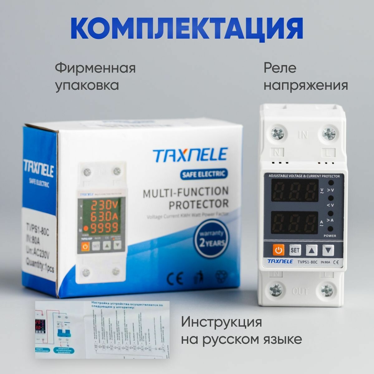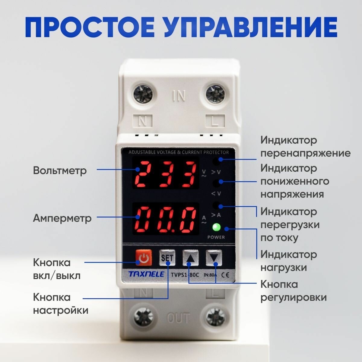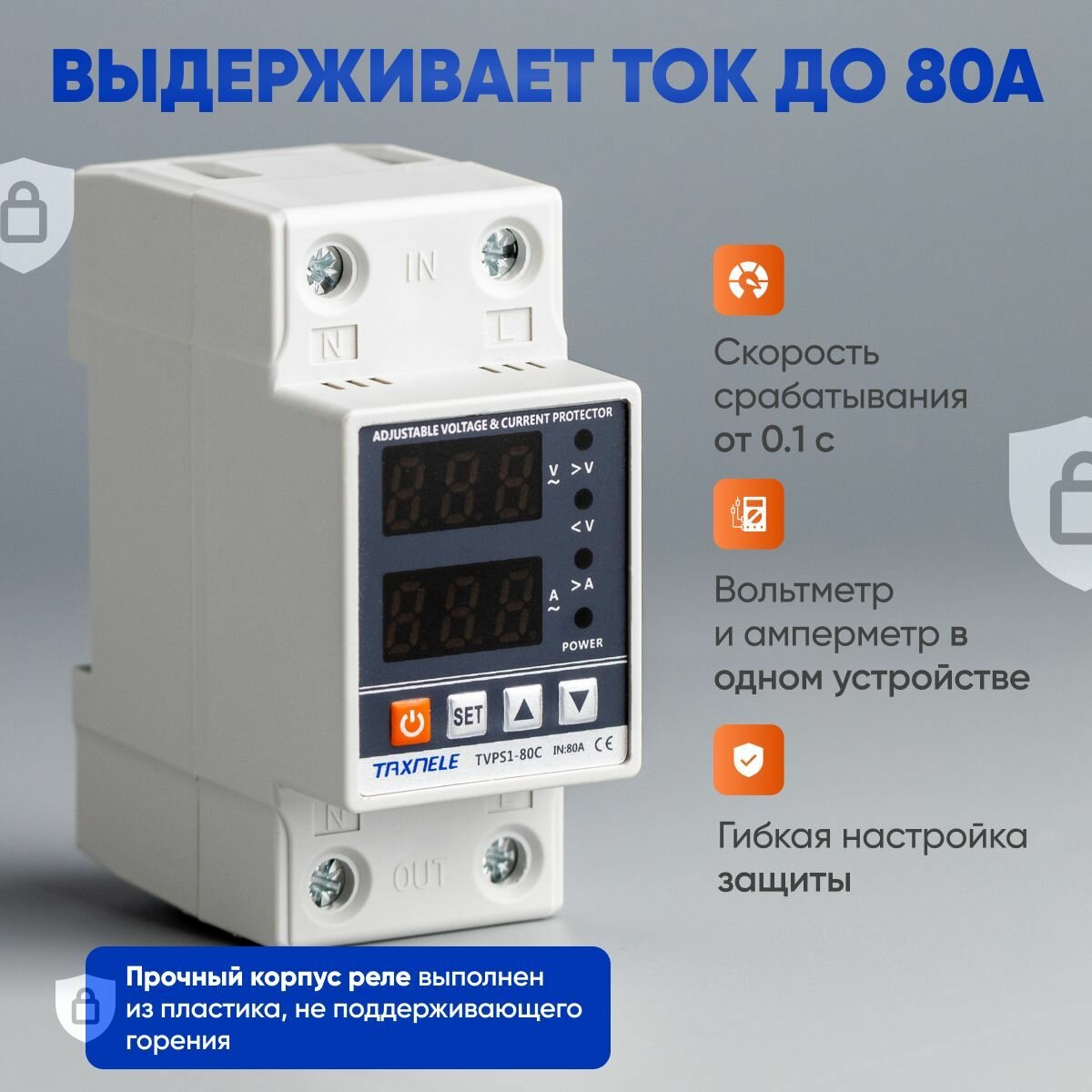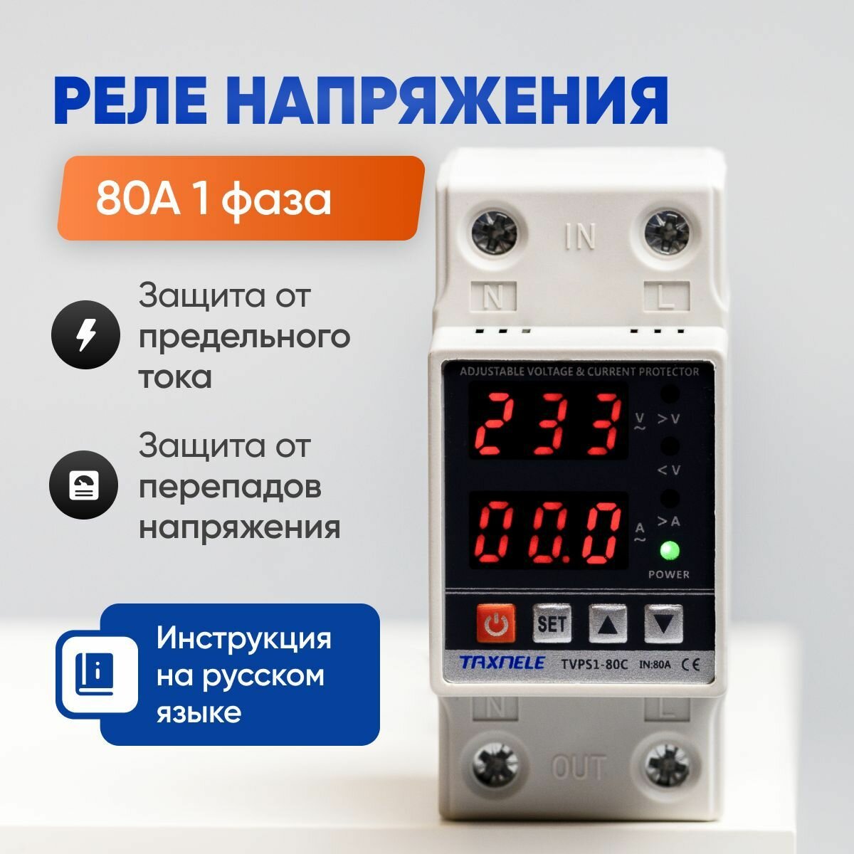 Реле контроля напряжения с защитой от перегрузки по току и перенапряжения 80 А / Защитное устройство в DIN рейку интересное: