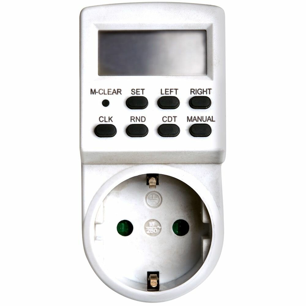 | Дополнительная информация | количество программ: 20 режимов; выбор режимов MANUAL ON / AUTO / MANUAL OFF; ЖК-дисплей с секундомером; функция перевода на летнее время; функция случайного включения с плавающим опережением от 2 до 30; в функции обратного отсчета максимум 23 часа 59 минут 59 секунд; 15 комбинаций дней недели; резерв батареи: 100 ч |