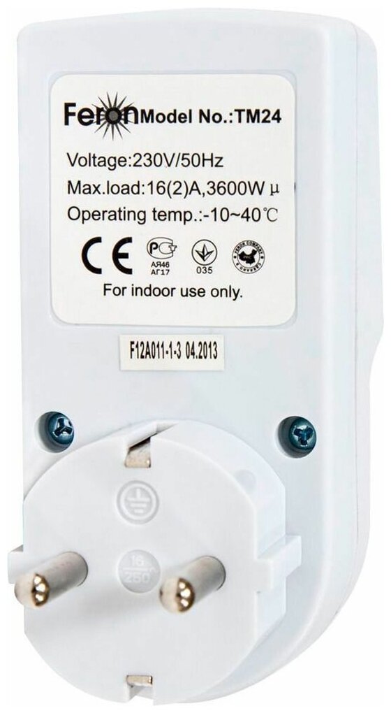 Розетка (недельная электронная), FERON TM24, IP20, 230V, 3600Вт/16А цвет белый, 100*45*79мм 23257 интересное: