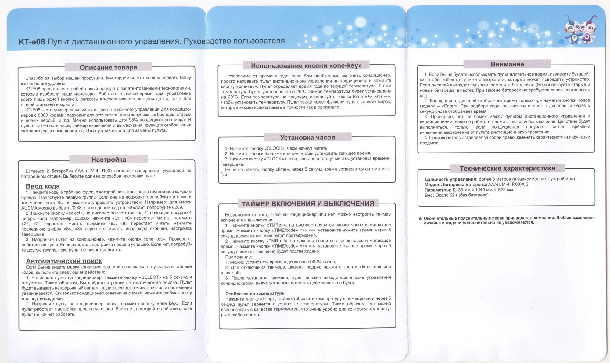 | Дополнительная информация | если марка вашего кондиционера не указана в списке кодов,то используйте автоматический поиск |