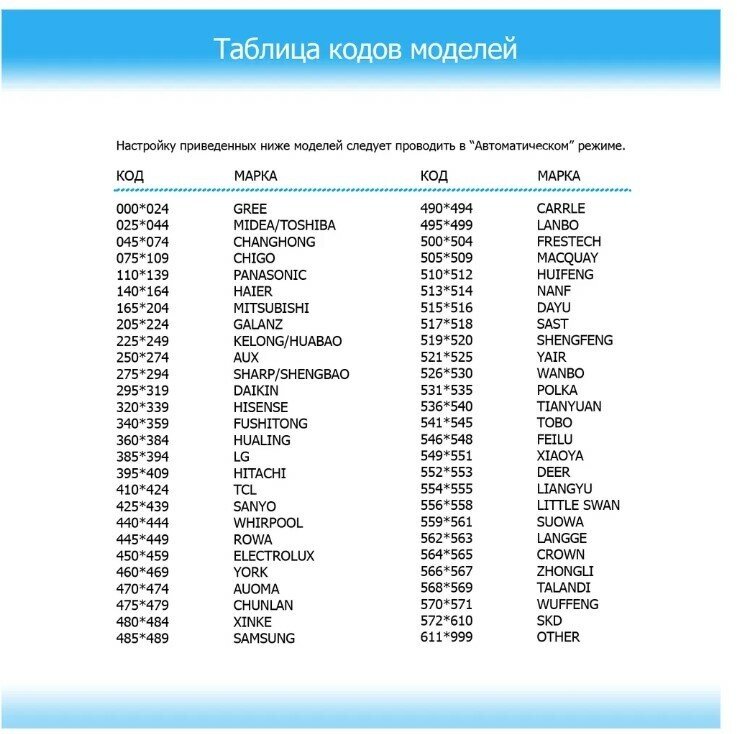| Отзыв: | пульт очень удобный хотя сразу не разобрался какой код у мой сплит системы |