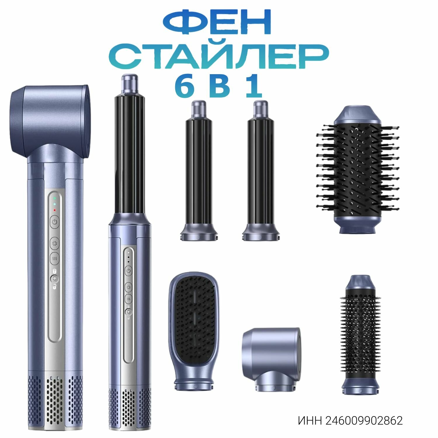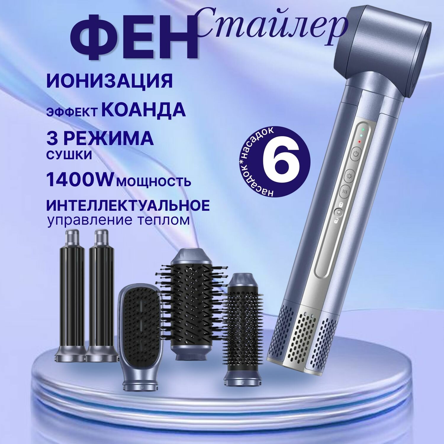 Купить Фен стайлер Gecht для волос с ионизацией, 6 насадок, голубой