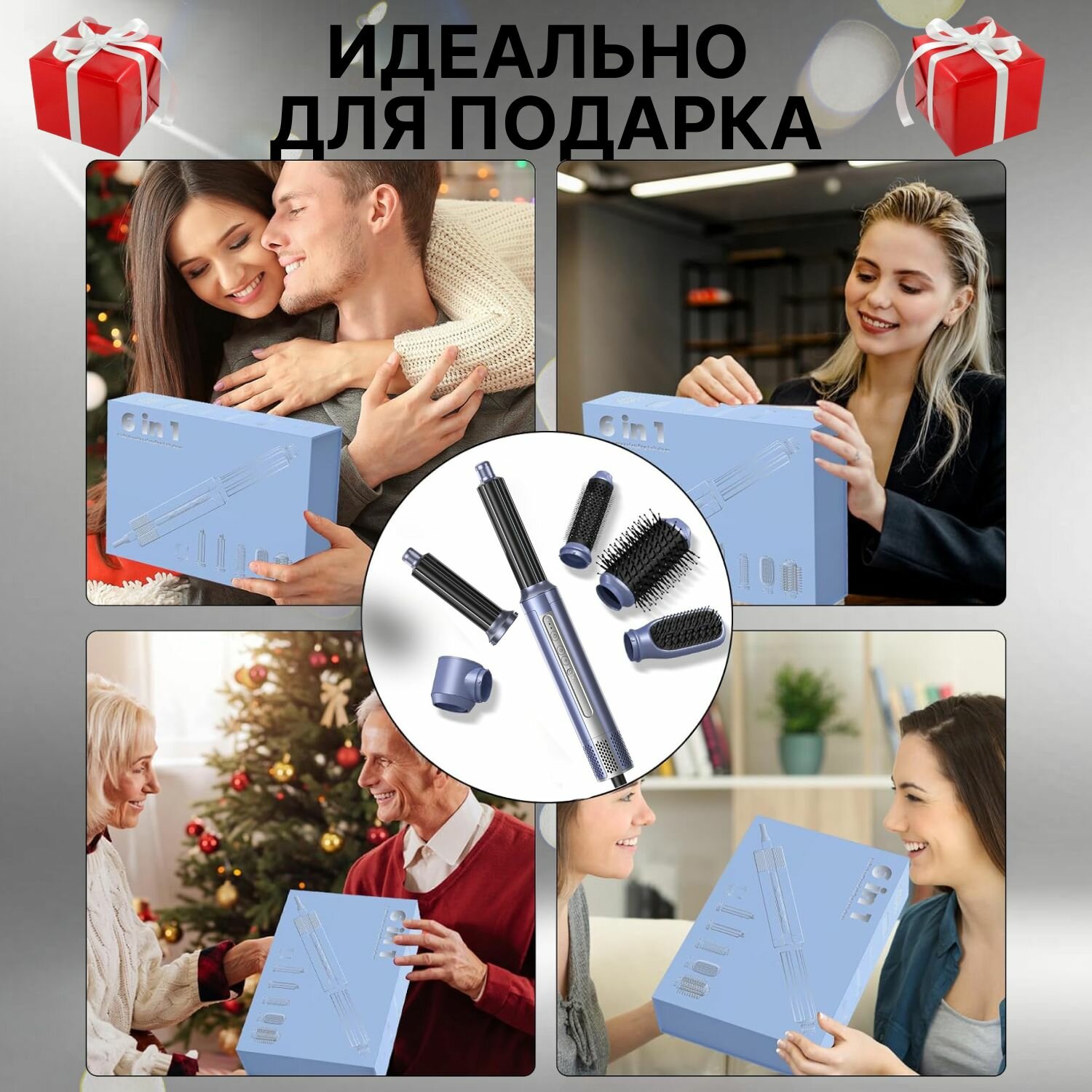Фен Gecht профессиональный с 5 насадками для укладки и завивки волос, стайлер 5 в 1, серый