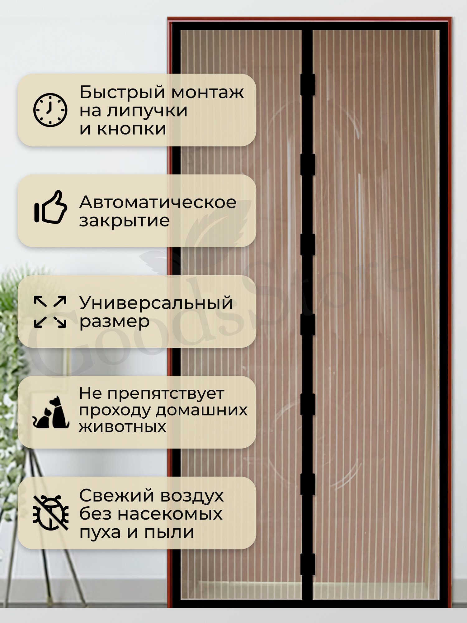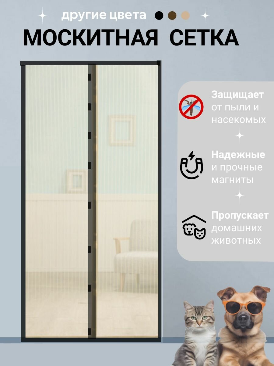 Антимоскитная защитная сетка с магнитными креплениями, 210 x 100см интересное: