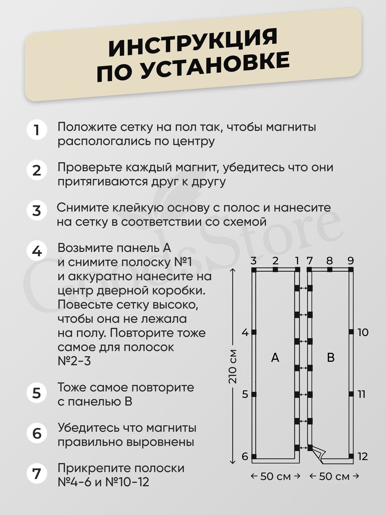 Купить Антимоскитная защитная сетка с магнитными креплениями, 210 x 100см