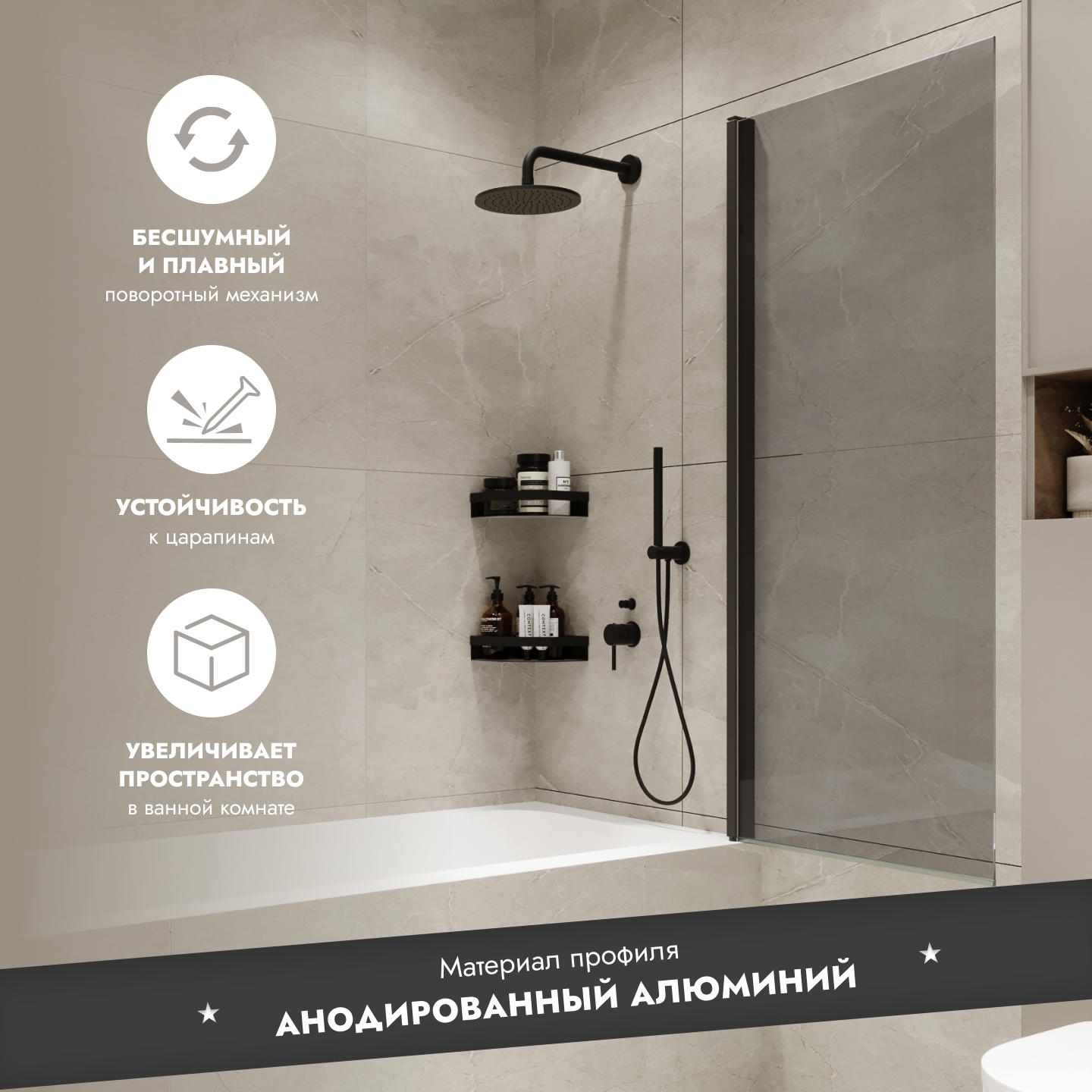Ниже Вы можете прочитать отзывы на Стеклянная перегородка (шторка, ширма) на борт ванны поворотная на монопетле черный профиль тонированное стекло, ознакомится с подробными характеристиками, посмотреть интересные обзоры и фотографии на Стеклянная перегородка (шторка, ширма) на борт ванны поворотная на монопетле черный профиль тонированное стекло.