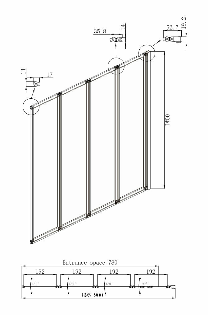 Стеклянная шторка для ванной со складывающимися во внутрь дверями Ambassador Bath Screen 16041110R: правосторонняя ширма для ванны 90 см
