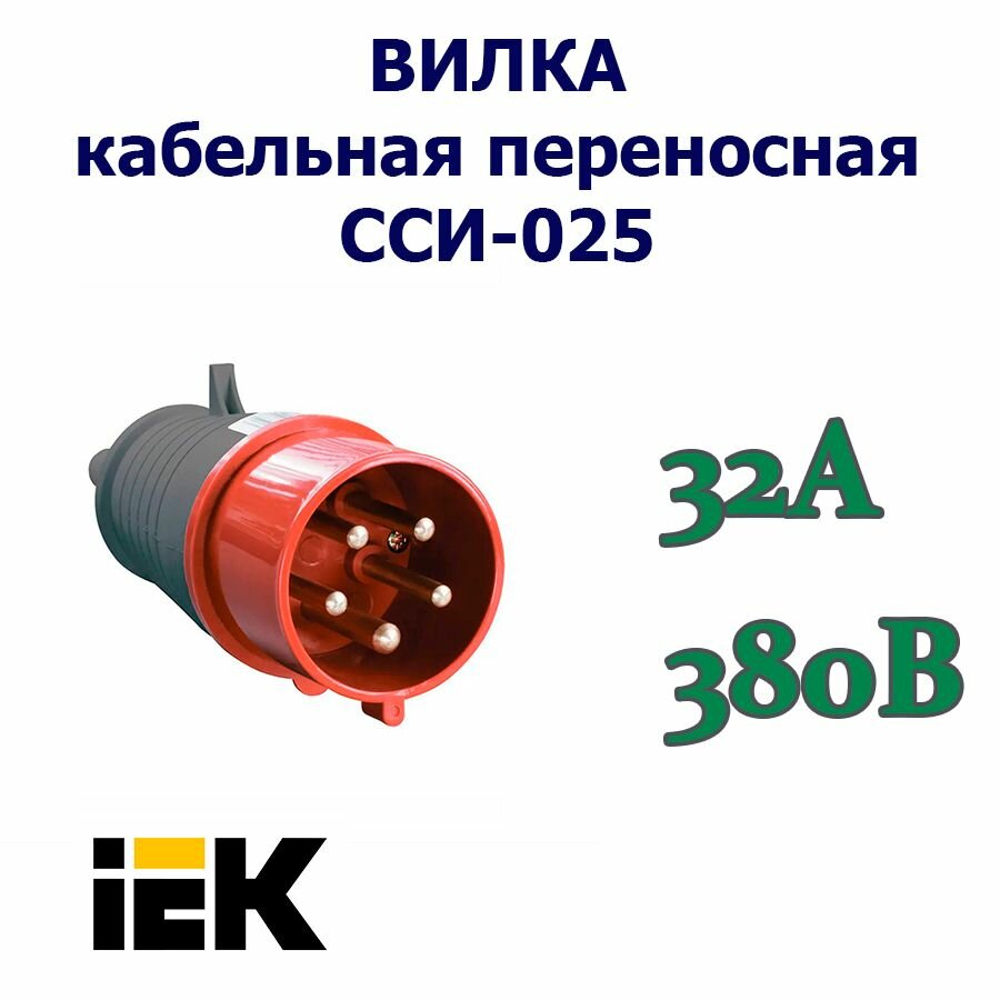 Вилка переносная IEK ССИ-025 PSR02-032-5, 32A-6ч, 3P+PE+N, IP44, красная