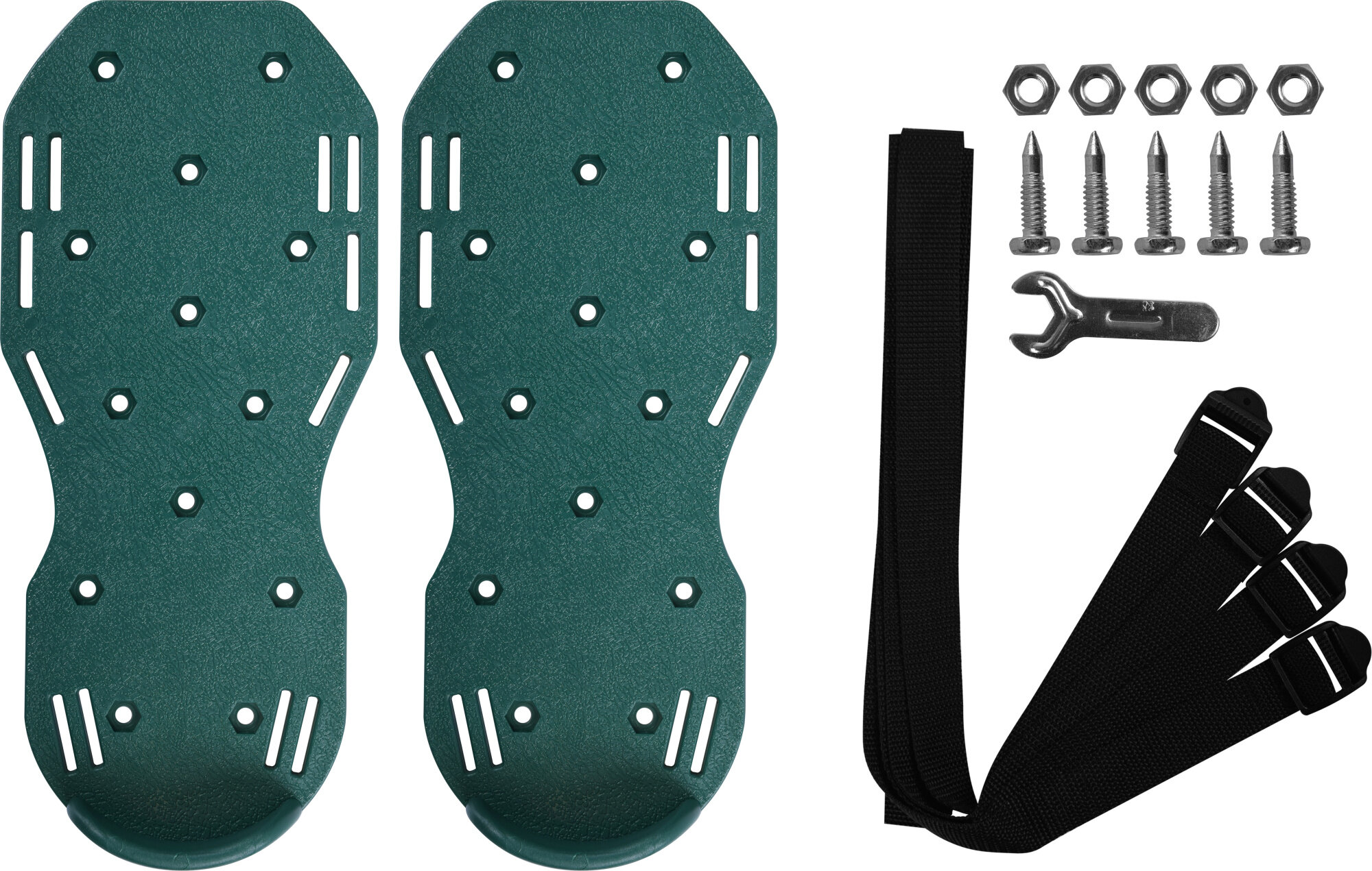 | Подробная комплектация | Подошвы - 2 шт. Шипы 25 мм - 26 шт. Гайки крепежные - 26 шт. Ключ гаечные - 1 шт. Ремни крепежные - 4 шт. |