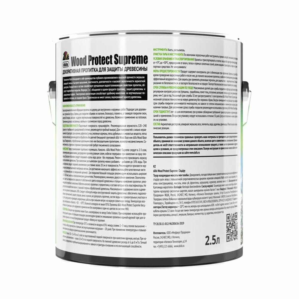 Декоративная высокопрочная пропитка по дереву Dufa Wood Protect Supreme (2,5л) бесцветный и под колеровку