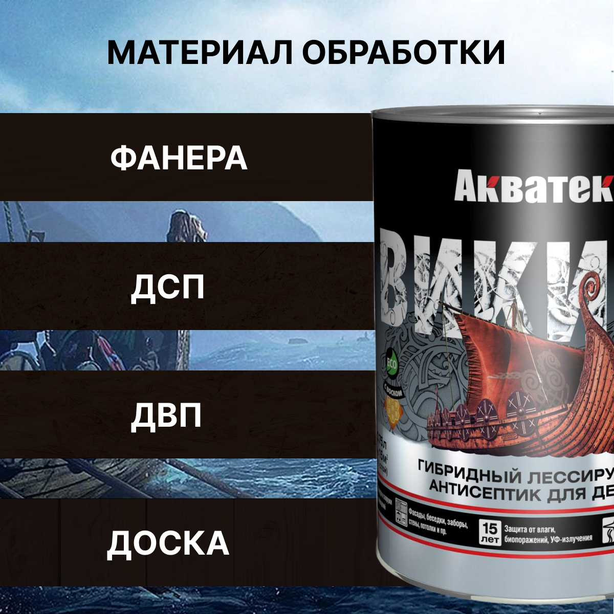 Гибридный лессирующий антисептик для дерева акватекс викинг (сосна / 0.75л.)