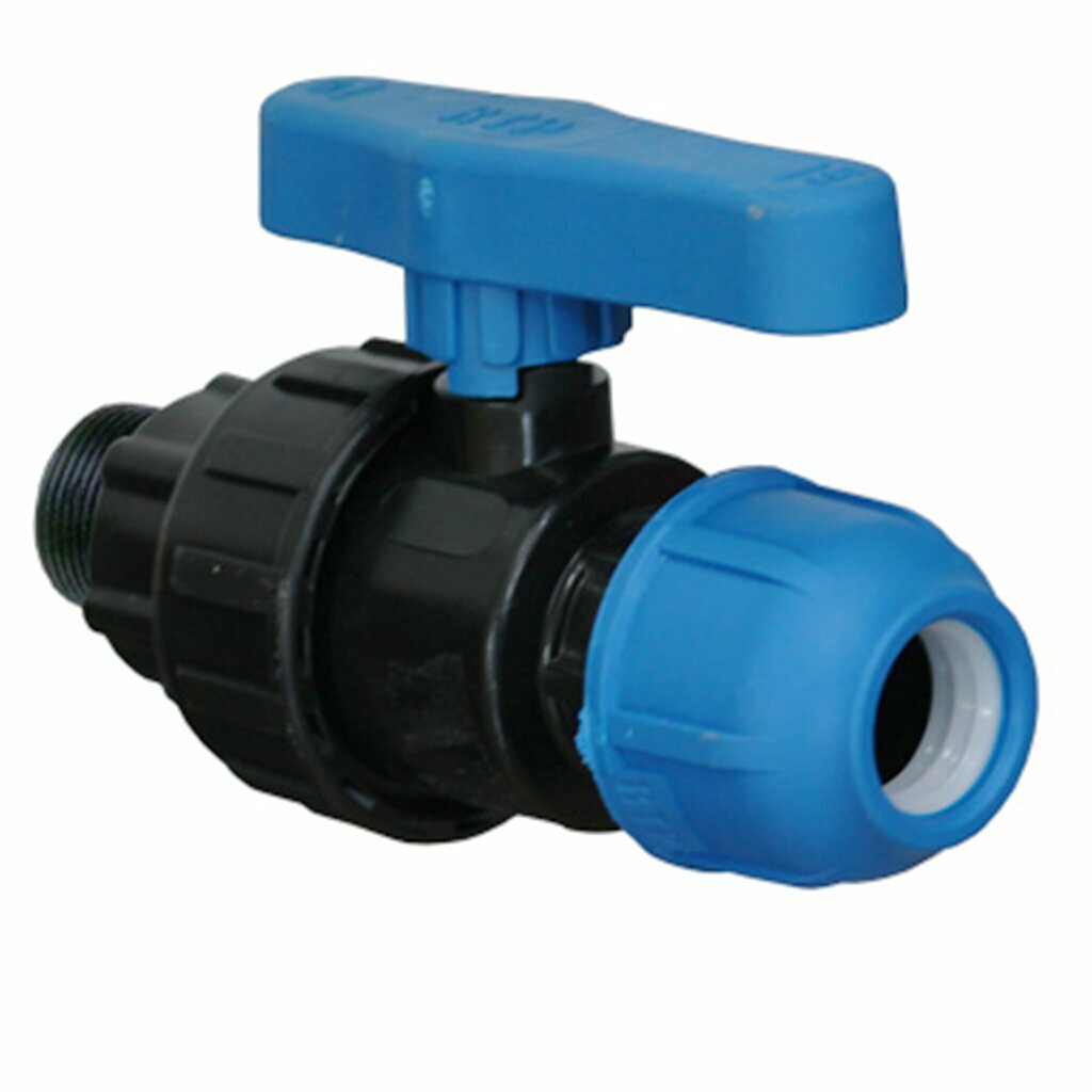 Шаровой кран ПНД PN16 RTP - Цанга D32 мм/Наружная трубная резьба 1" компрессионный запорный фитинг для труб ПНД
