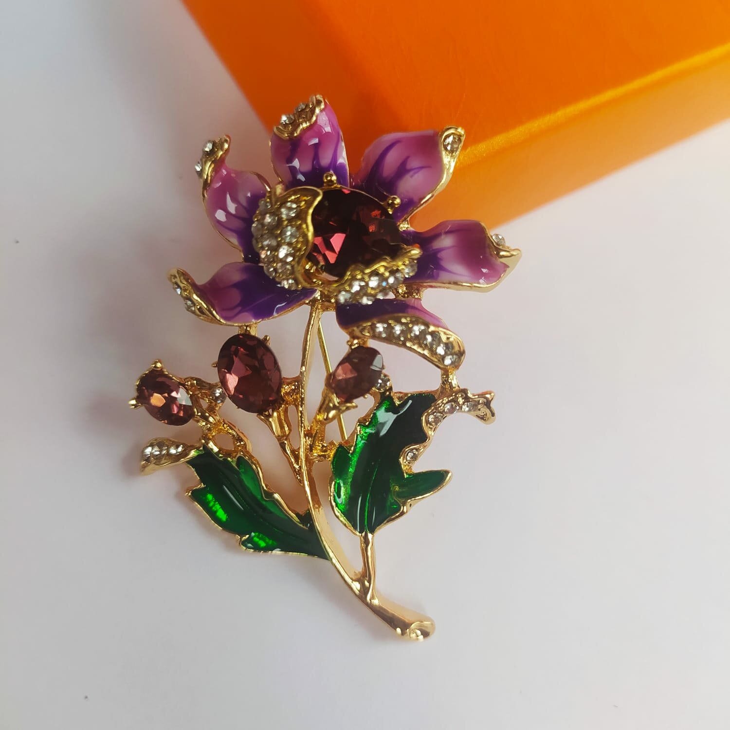 Брошь "Цветок" полевой, цветная в золоте 6946631