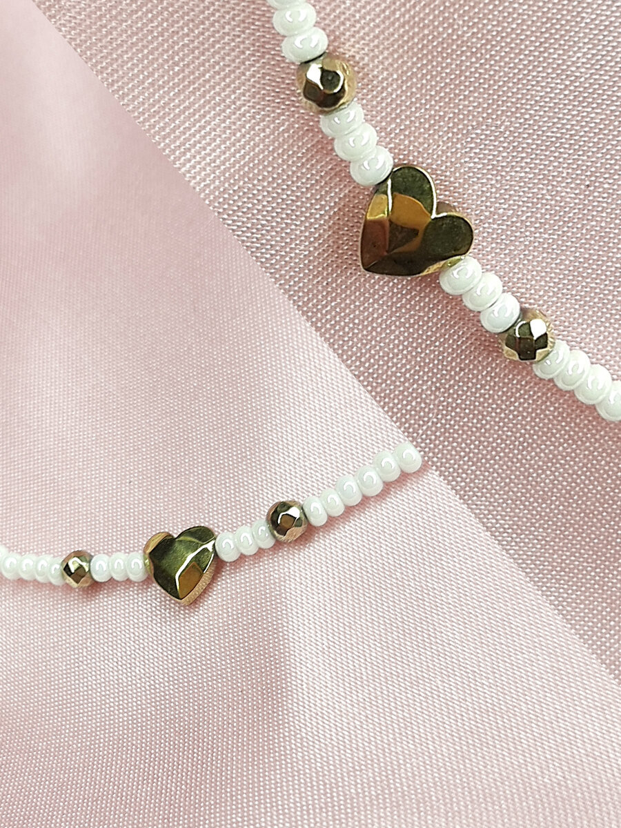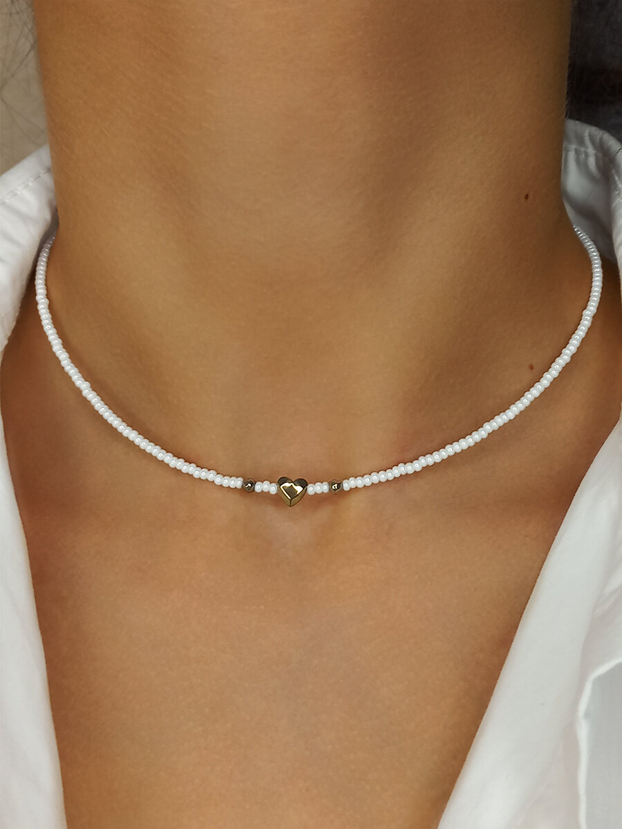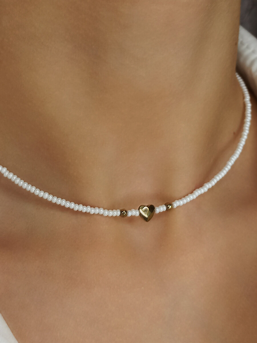 Чокер из жемчужного бисера с золотым сердечком