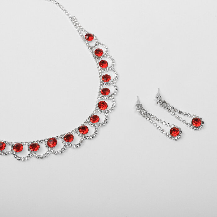 Комплект бижутерии Queen Fair: серьги, колье, стекло, размер колье/цепочки 32 см, красный