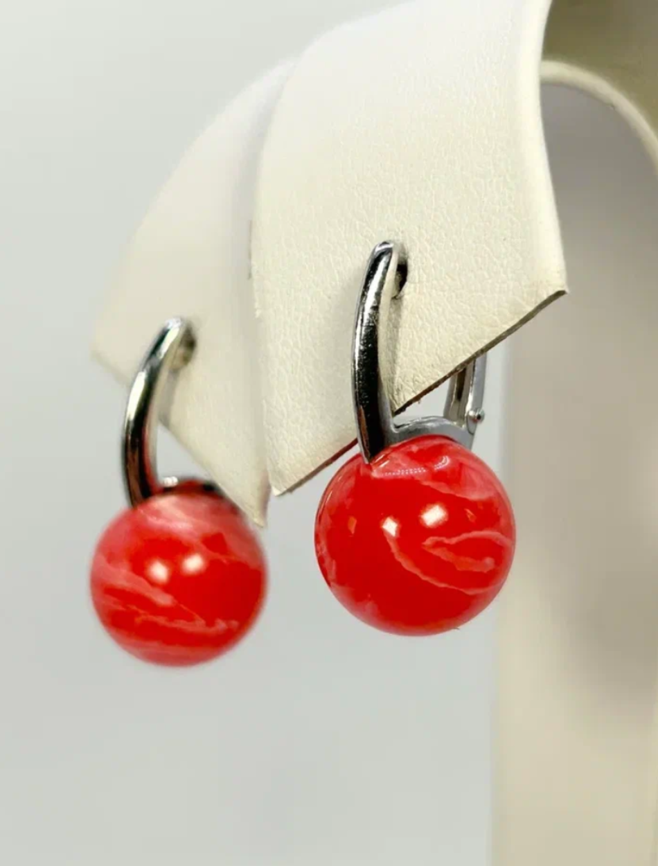 Серьги с кораллом "Гири" серебро 925 Argentum
