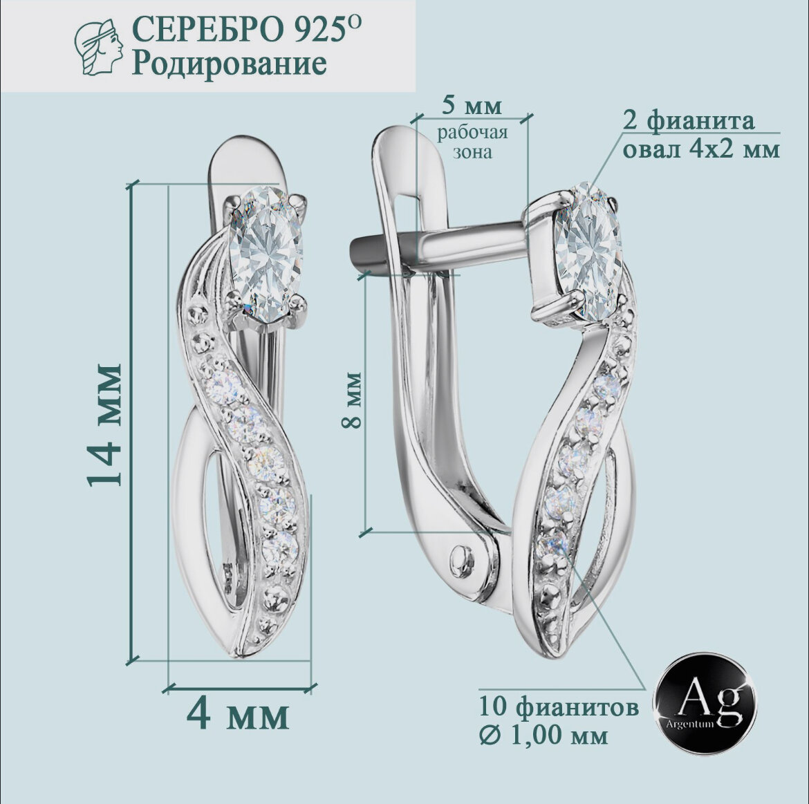 Серьги с фианитами "Бесконечность" серебро родий 925 пробы Аргентум интересное: