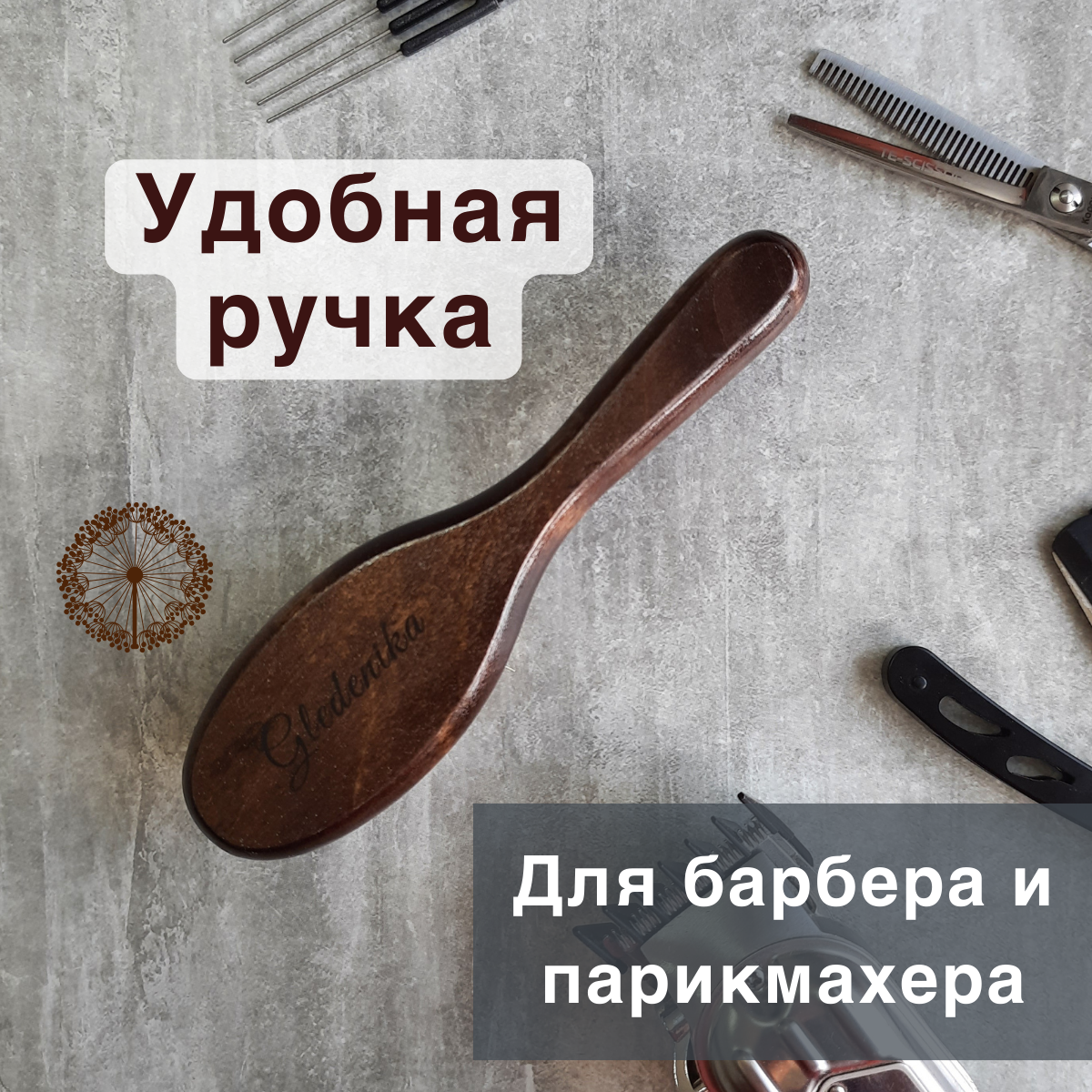 Купить Щетка для бороды и усов Gledenika из волокна тампико, жесткая, с ручкой / Оригинальные подарки мужчине