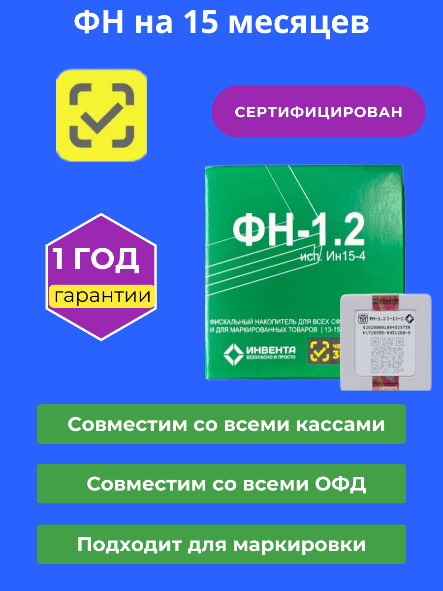Фискальный накопитель Инвента ФН-1.2 на 15 месяцев, для онлайн-касс, ОФД, Маркировка, Честный знак интересное: