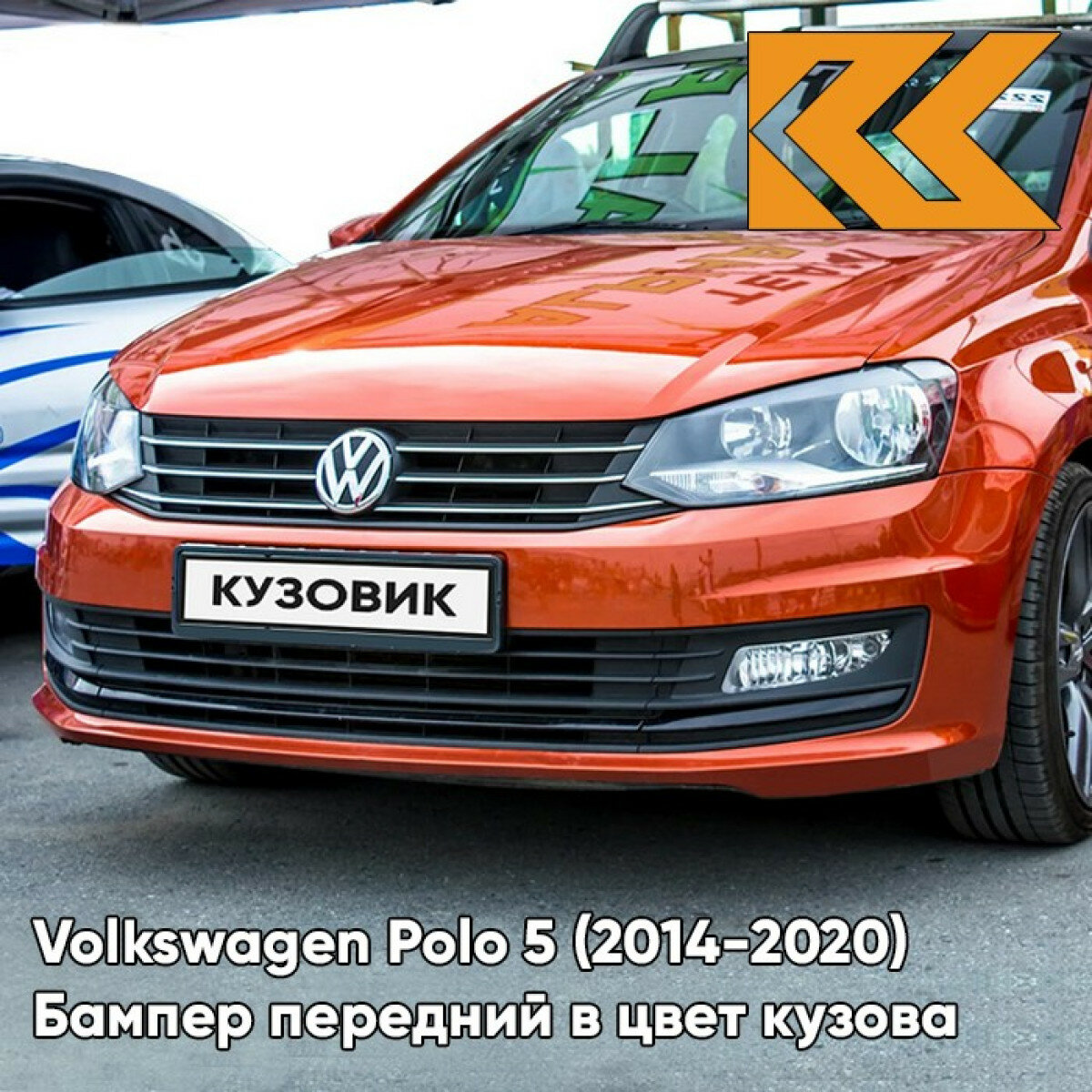 Бампер передний в цвет кузова для Фольксваген Поло 5 Volkswagen Polo 5 (2014-2020) седан рестайлинг 3J - LA2W, COPPER ORANGE - Оранжевый