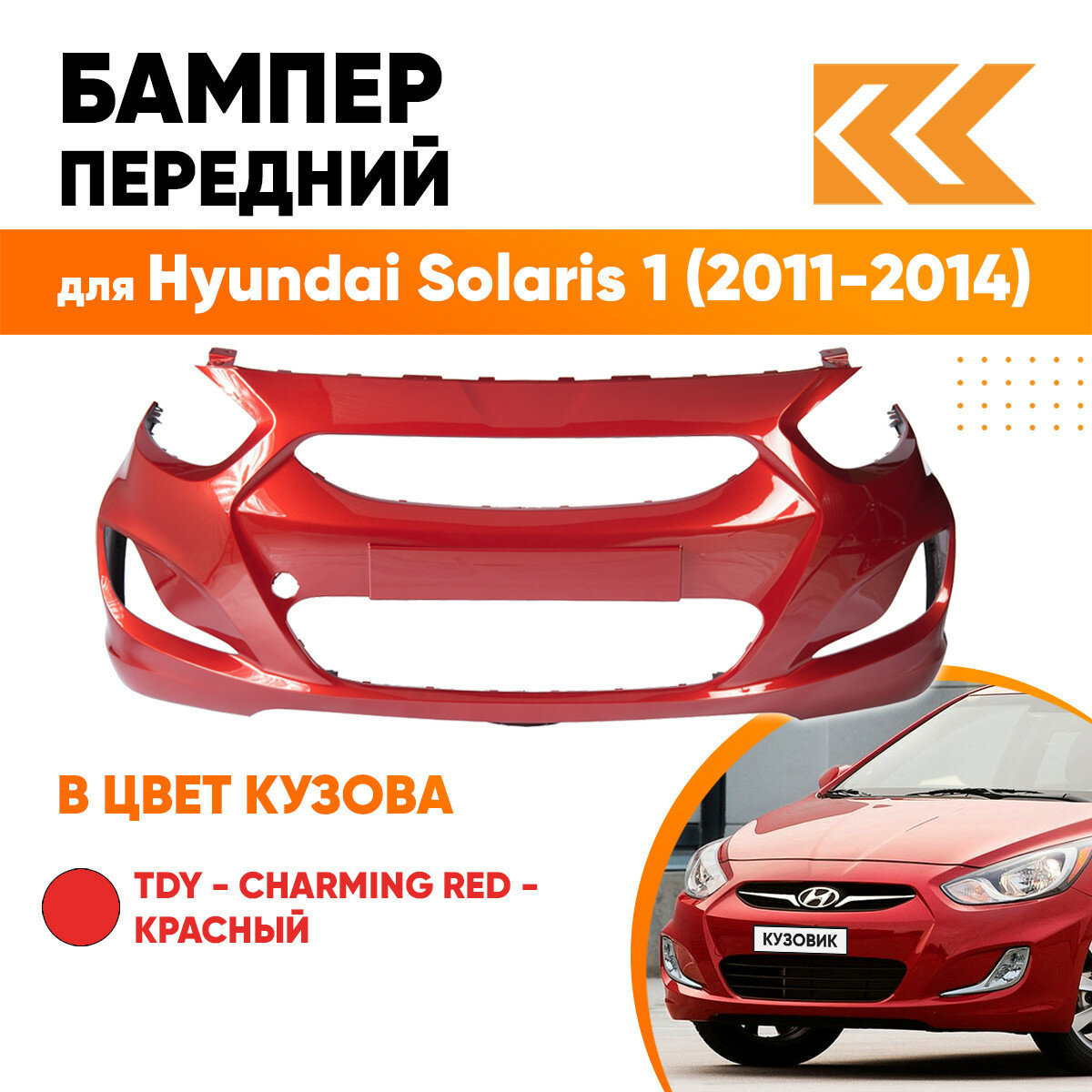 Купить Бампер передний в цвет Hyundai Solaris 1 (2011-2014) TDY - CHARMING RED - красный