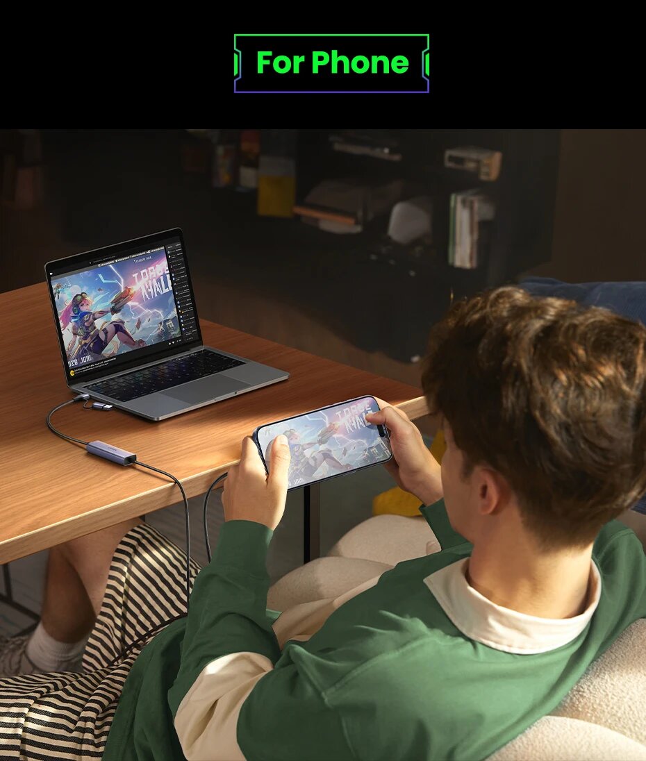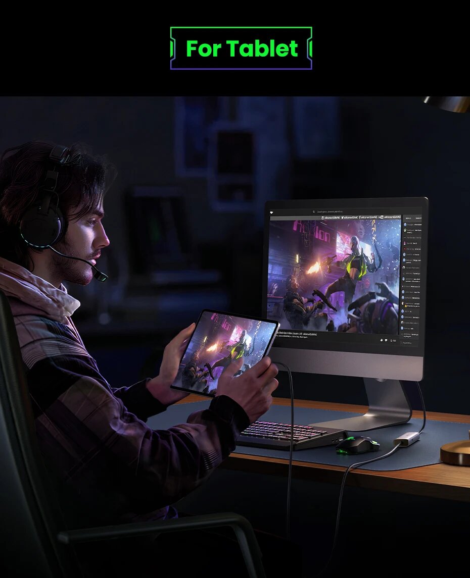 UGREEN Карта видеозахвата 4K HDMI к USB/USB-C Карта захвата мобильных игр в прямом эфире для ПК Камера Прямая трансляция Запись встреч