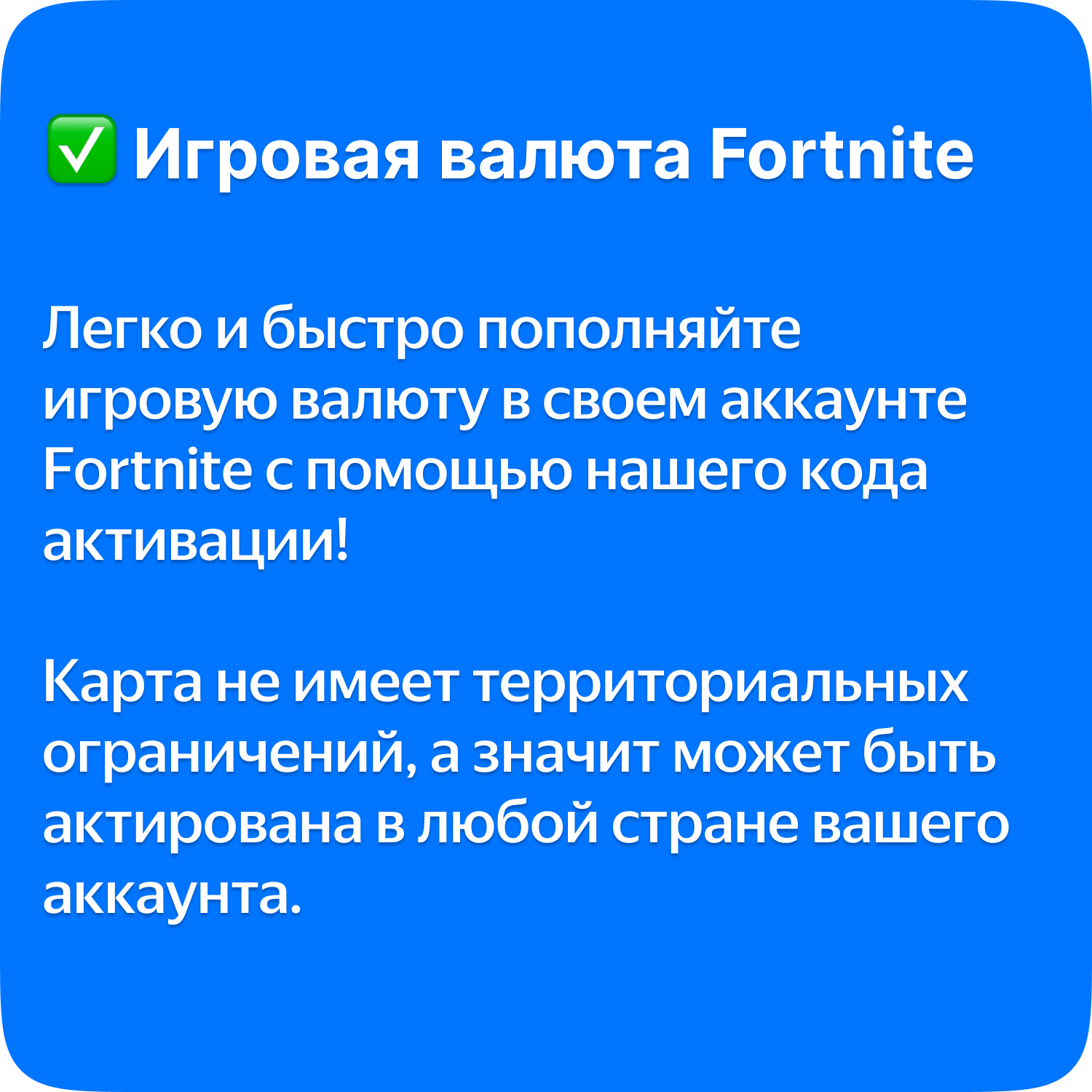 Пополнение счета Fortnite на 1000 V-Bucks / Код активации В-баксы / Подарочная карта Фортнайт / Gift Card (Россия)