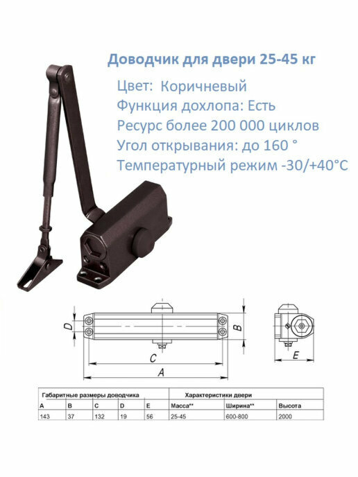 Доводчик дверной SD-2050 BR 75-95 кг (коричневый)