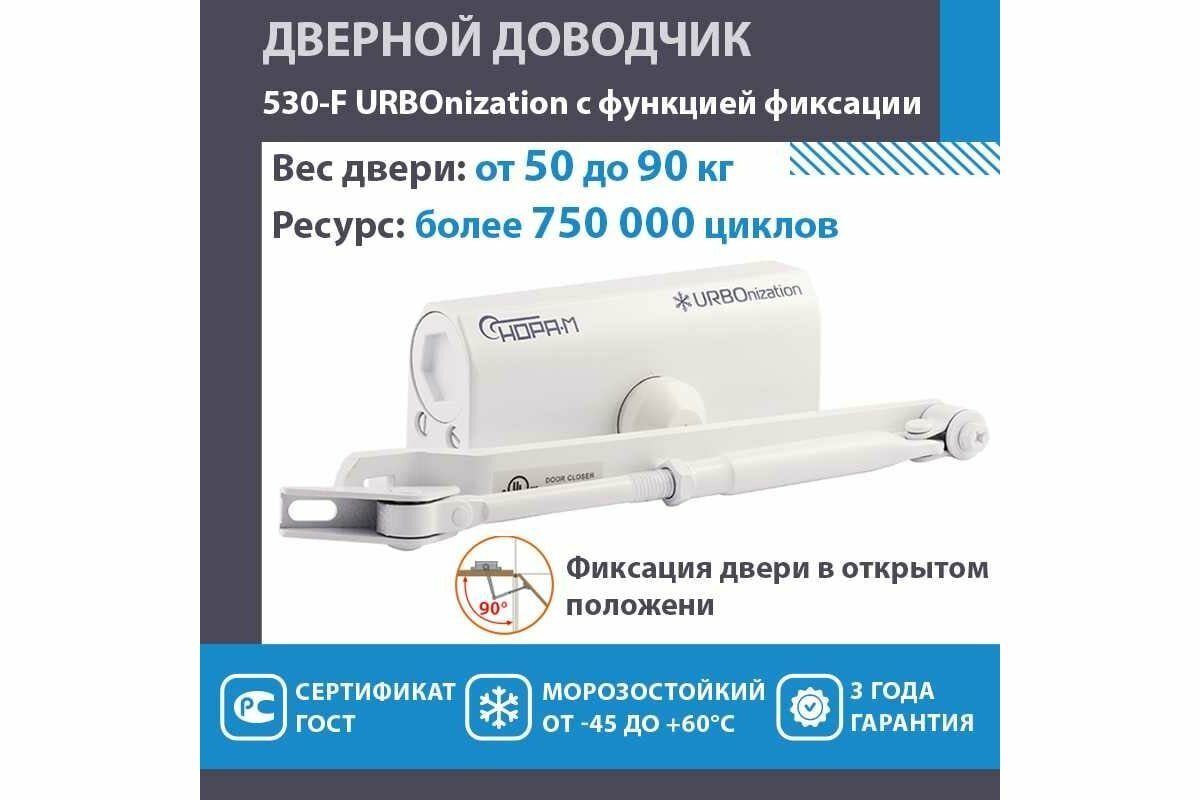 Доводчик дверной Нора-М 530F URBOnization (морозостойкий с фиксацией для дверей 50-90кг) - Белый