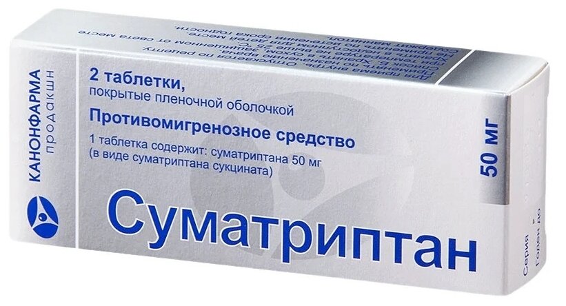 Ниже Вы можете прочитать отзывы на Суматриптан Канон, таблетки, покрыт. плен. об. 50 мг, 2 шт., ознакомится с подробными характеристиками, посмотреть интересные обзоры и фотографии на Суматриптан Канон, таблетки, покрыт. плен. об. 50 мг, 2 шт..