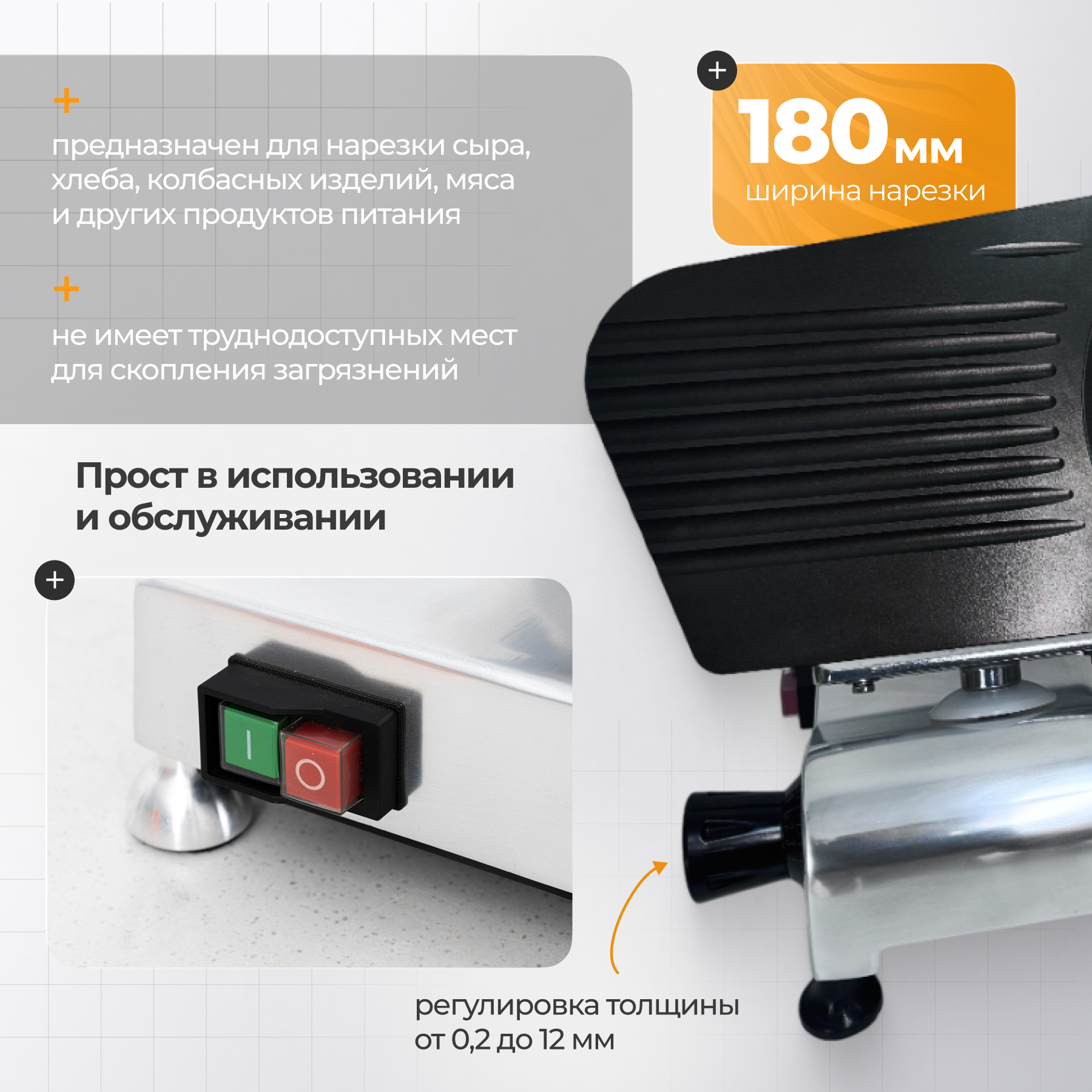 Слайсер для нарезки профессиональный профессиональный Crazy Pan CP-SLTEF220S, 0.12 кВт, 220В, диаметр ножа 200 мм, 18 кг