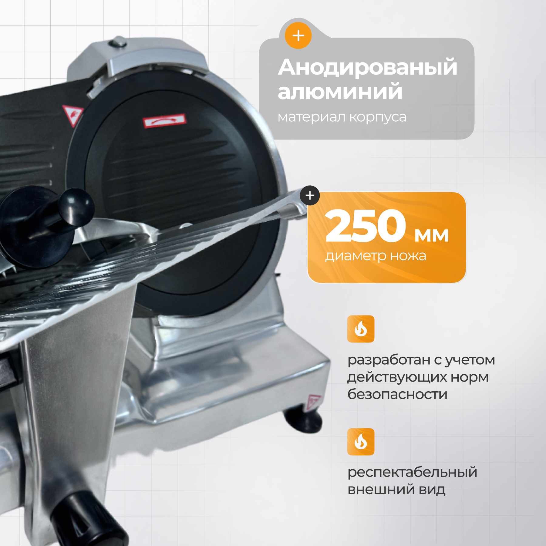 Слайсер для нарезки профессиональный Crazy Pan CP-SLTEF250S, 0.15 кВт, 220В, диаметр ножа 250 мм, 20 кг