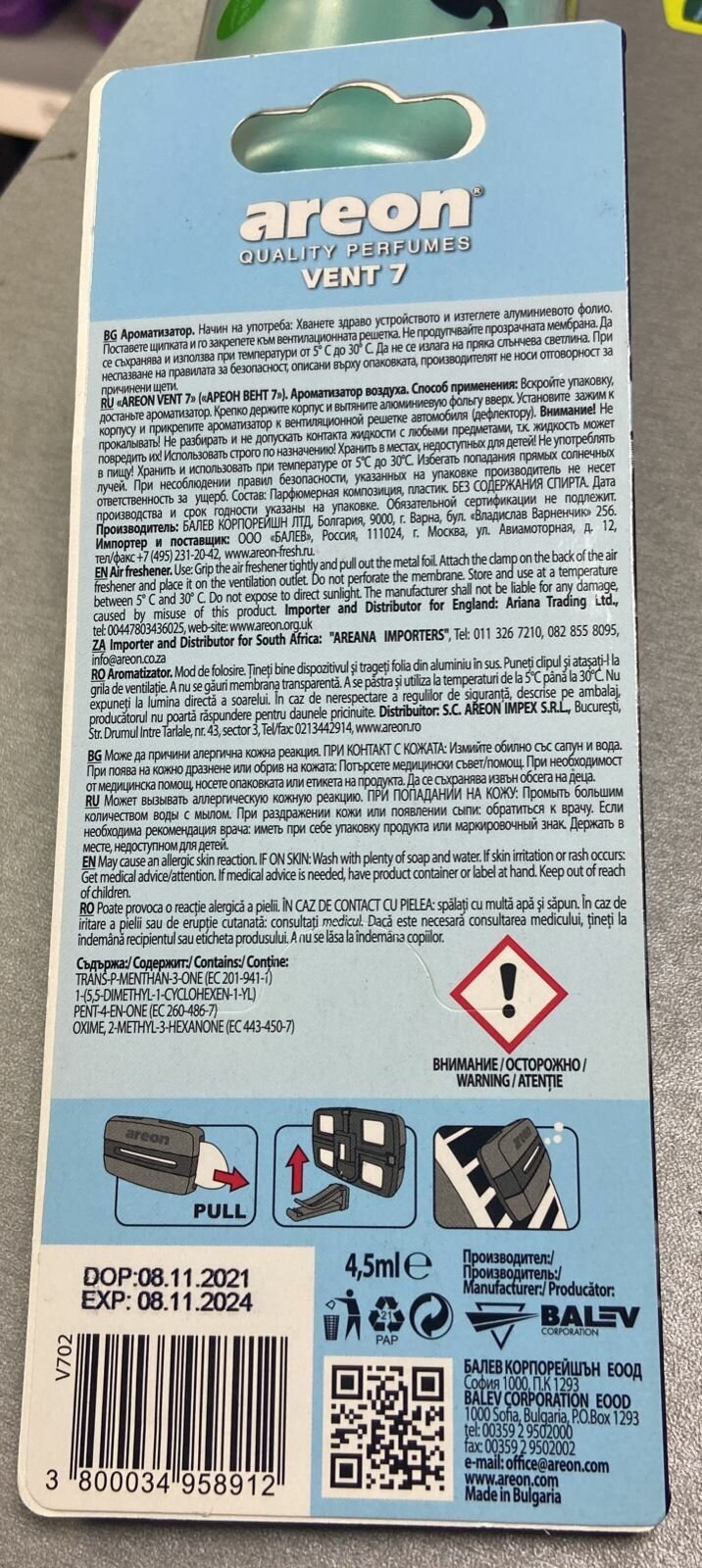 Ароматизатор на печку Areon Vent 7 Oxygen/Кислород интересное:
