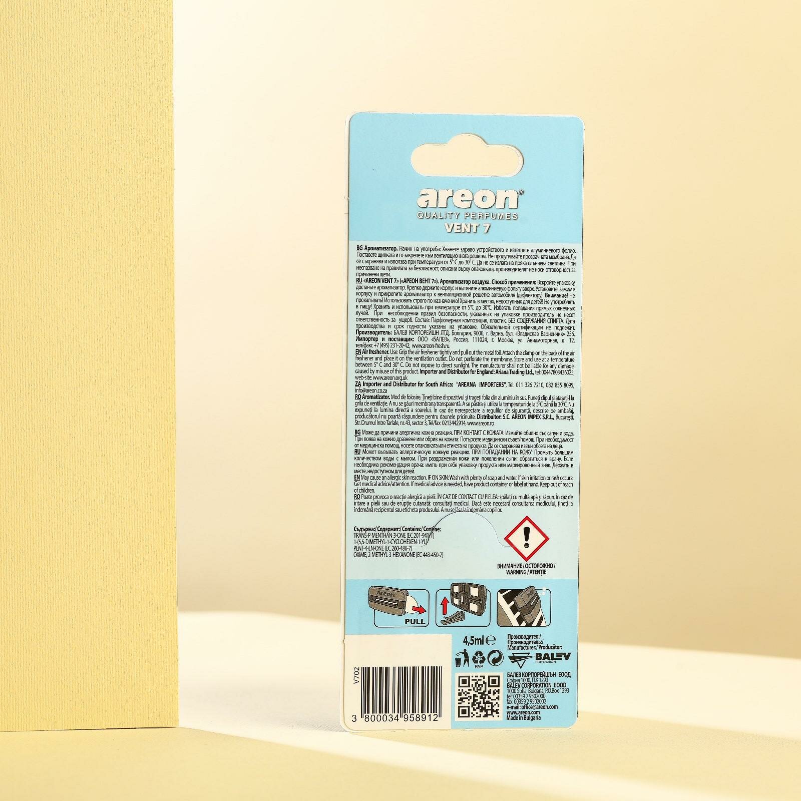 Ароматизатор Areon "Vent 7", Oxygen, на печку, 704-VE7-302