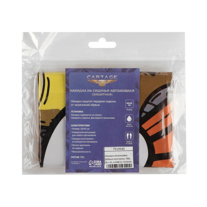 Cartage Накидка на сиденье автомобильное Cartage Добрые монстрики, ПВХ, 60 х 45 см, европодвес интересное: