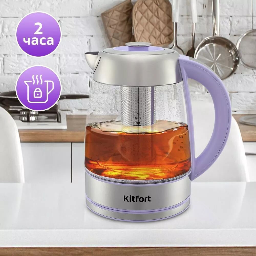 Чайник электрический KitFort КТ-6624, 2200Вт, лавандовый и нержавеющая сталь