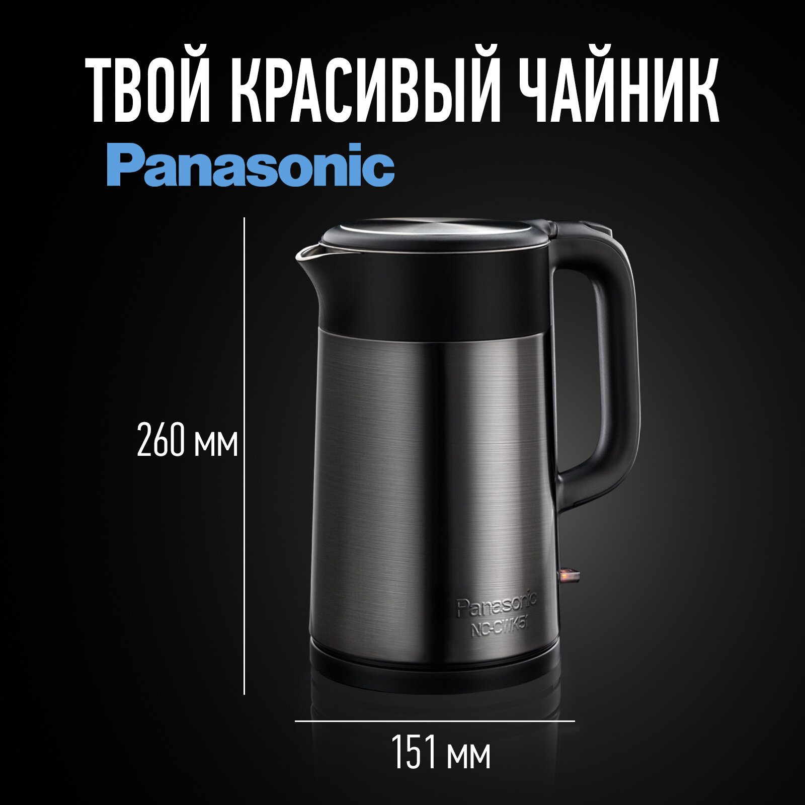 Купить Чайник электрический Panasonic NC-CWK51, 1500Вт, нержавеющая сталь и черный