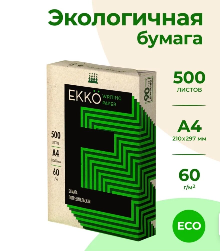 Офисная бумага Ekko А4 500 листов 60гр 60% ISO серая интересное: