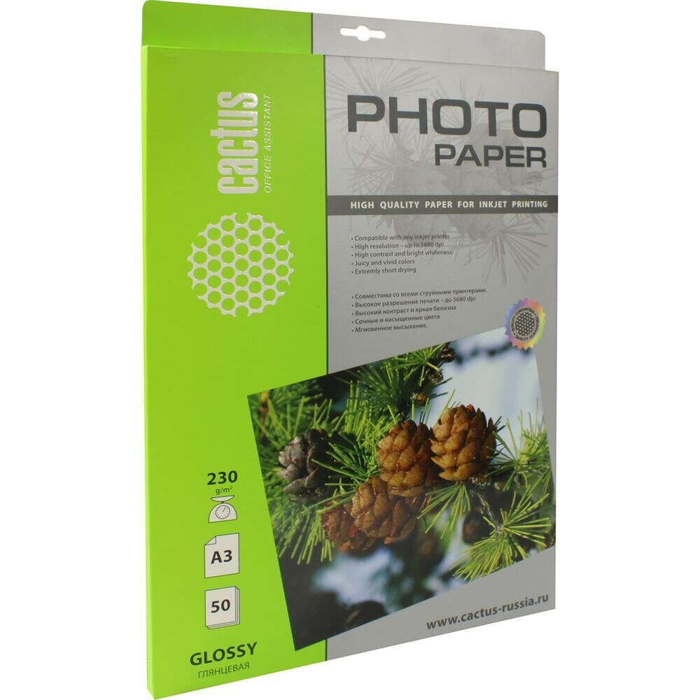 Фотобумага для струйной печати А3, 50 листов Cactus, 230 г/м2, односторонняя, глянцевая