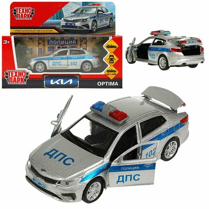 Купить Машина металлическая Киа Оптима Полиция, 12 см. серебристый Технопарк OPTIMA-12POL-SR