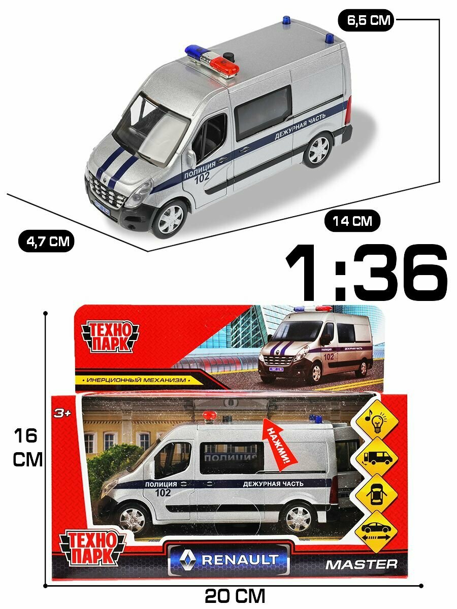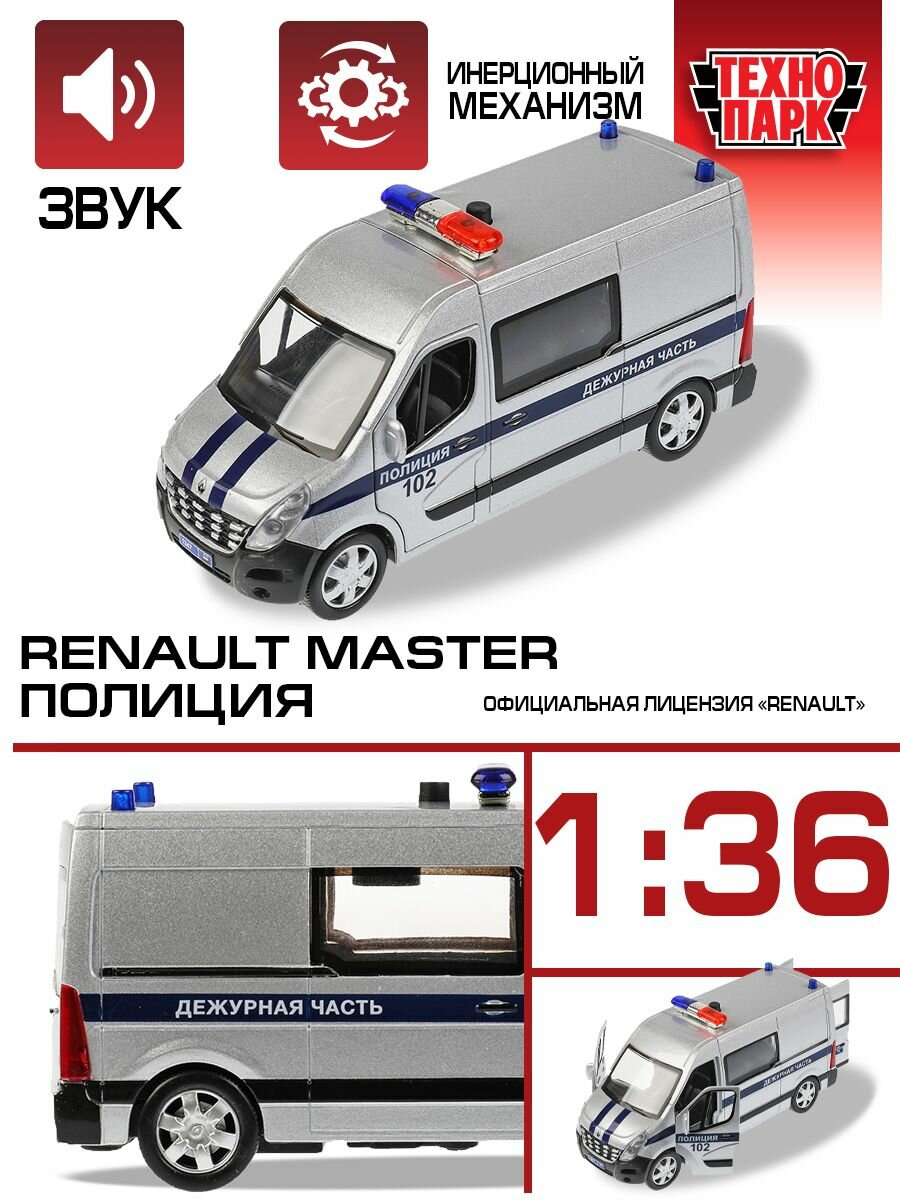 Купить Модель MASTER-14SLPOL-SR RENAULT Master полиция 14 см, двер,серебрист Технопарк в кор