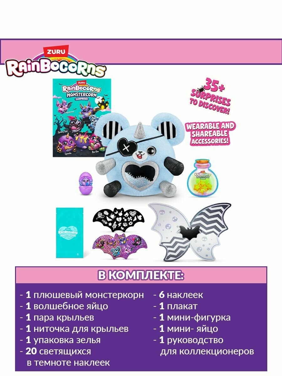 СохранитьБольшая плюшевая игрушка 30 см ZURU RAINBOCORNS MONSTERCORN серия 1 монстры, яйцо-сюрприз с наклейками и фигурками, детские крылья, подарок для девочки, 3+, 9297 интересное: