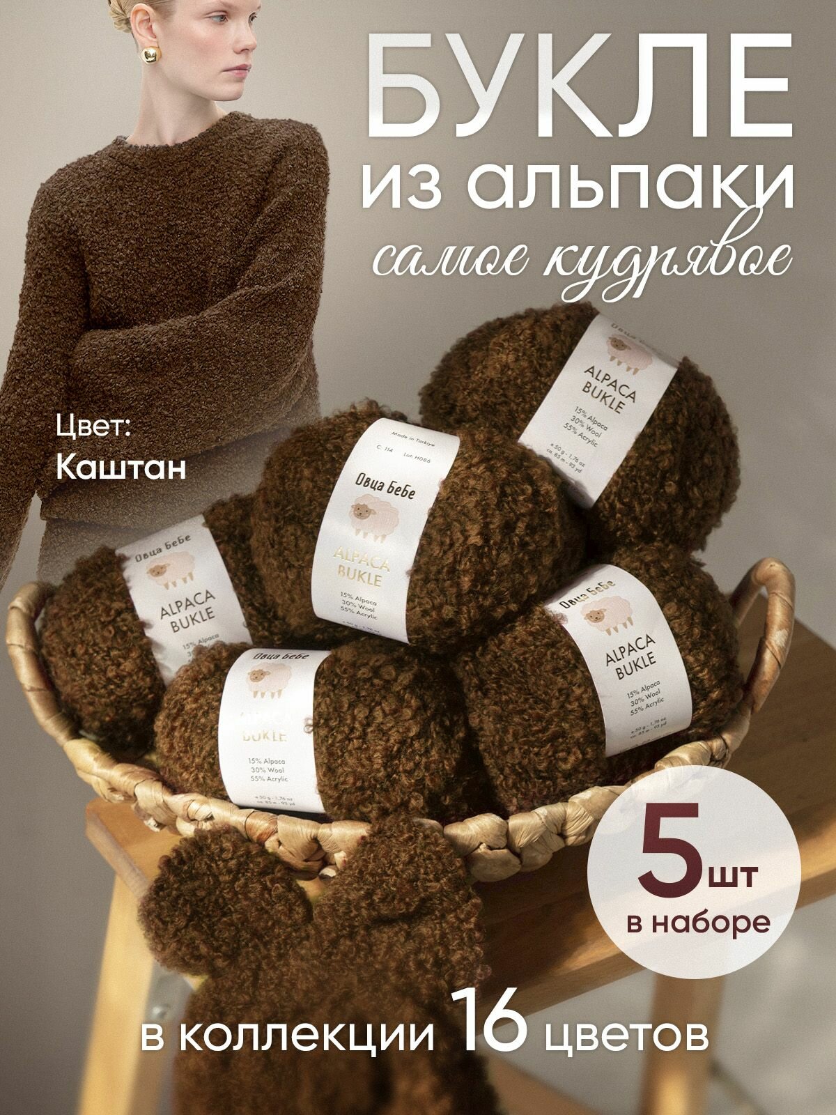 Купить Пряжа для вязания Буклированная Alpaca Bukle, цвет каштан (набор из 5шт)