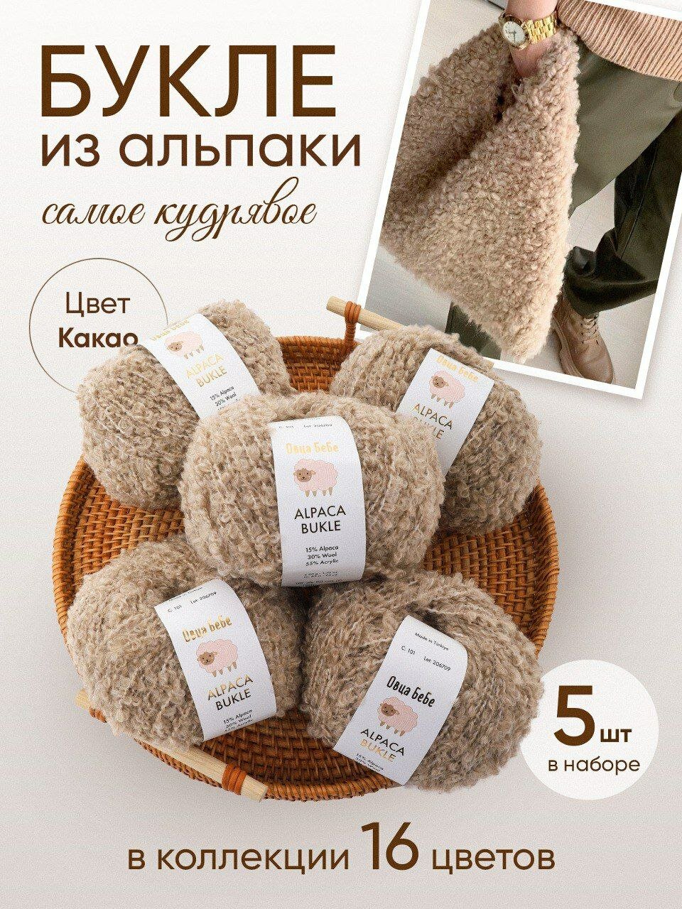 Купить Пряжа для вязания Буклированная Alpaca Bukle, цвет какао с молоком (набор из 5шт)