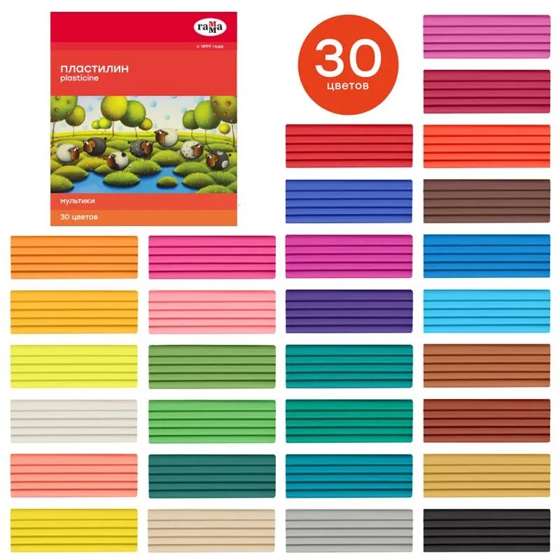 Купить Пластилин для лепки Гамма "Мультики" мягкий детский, 30 цветов, со стеком / Набор для развития и творчества детей в школу и детский сад