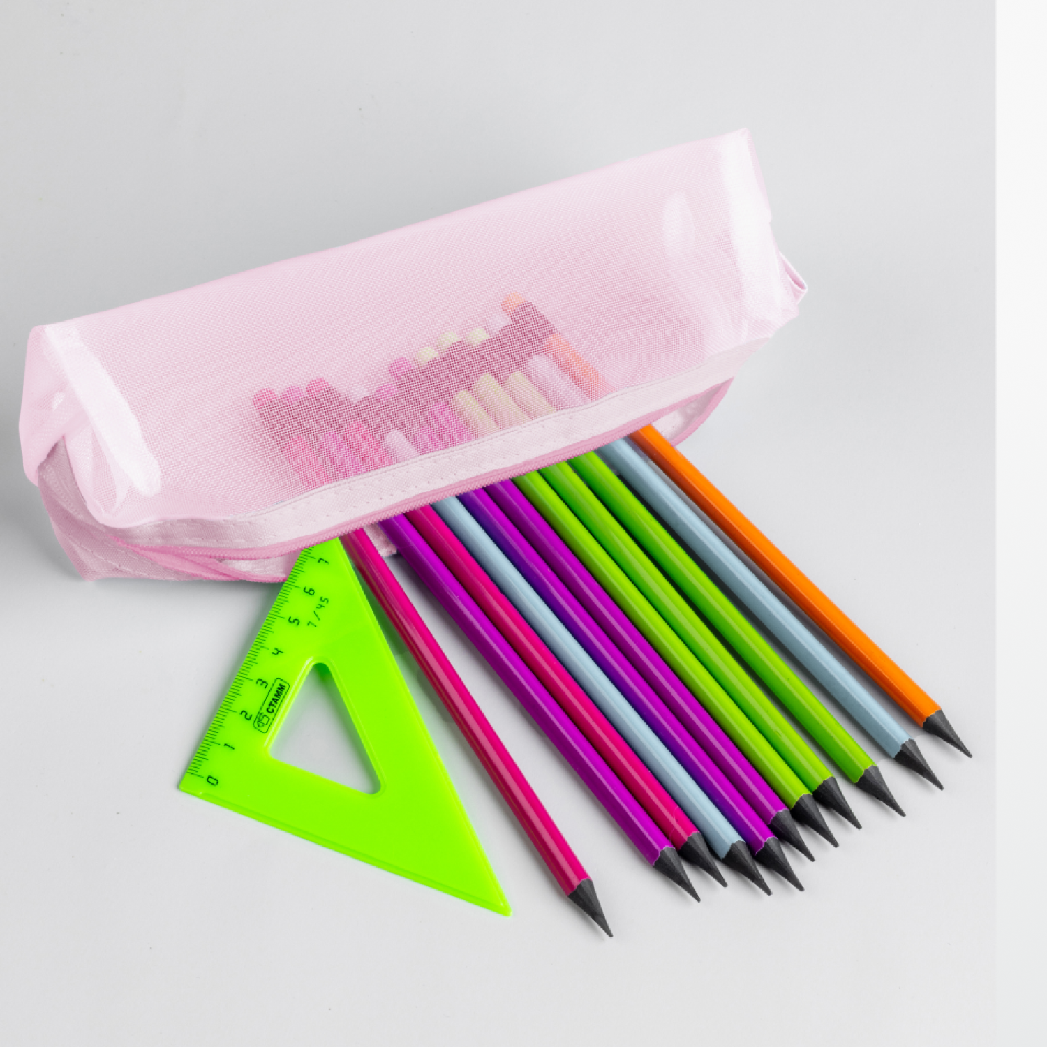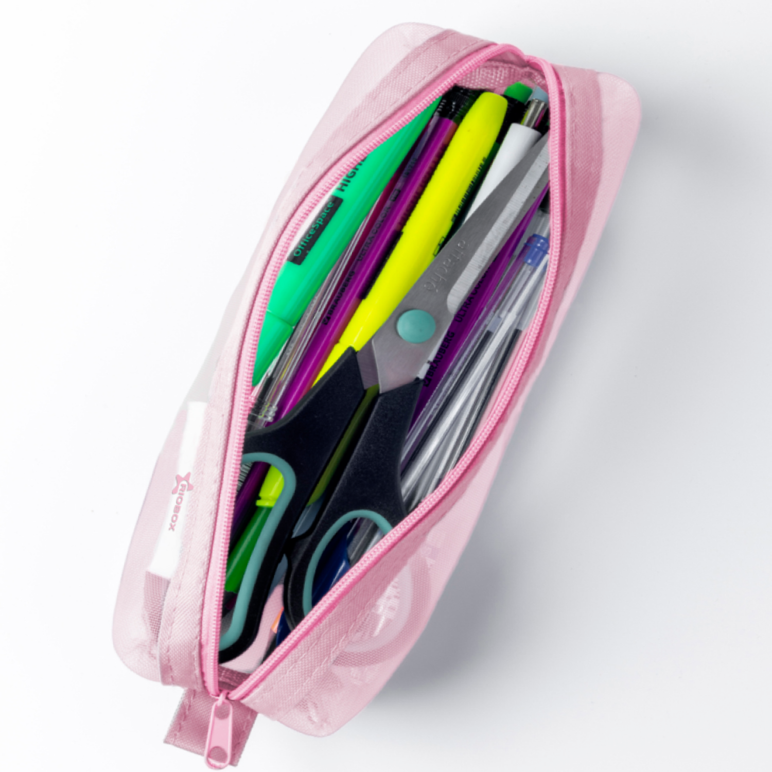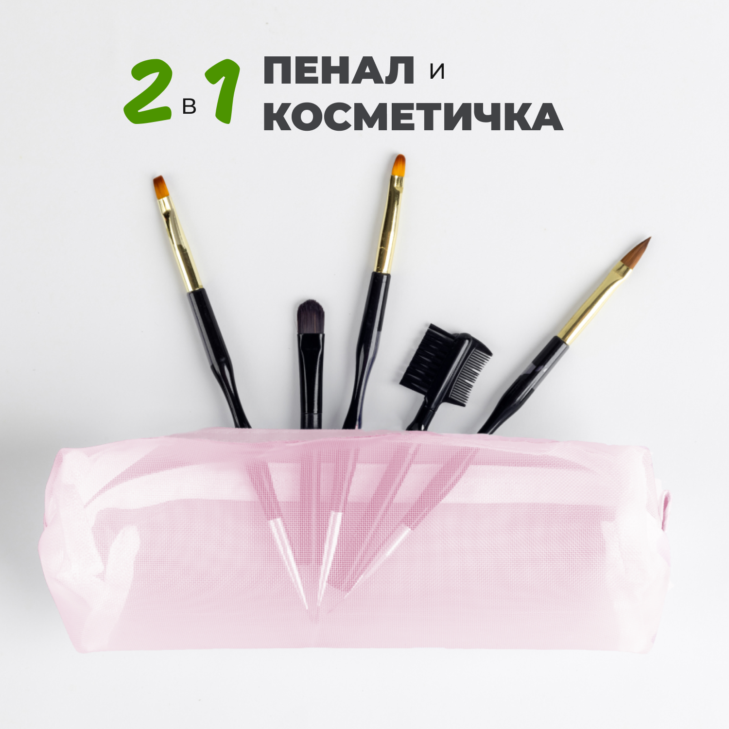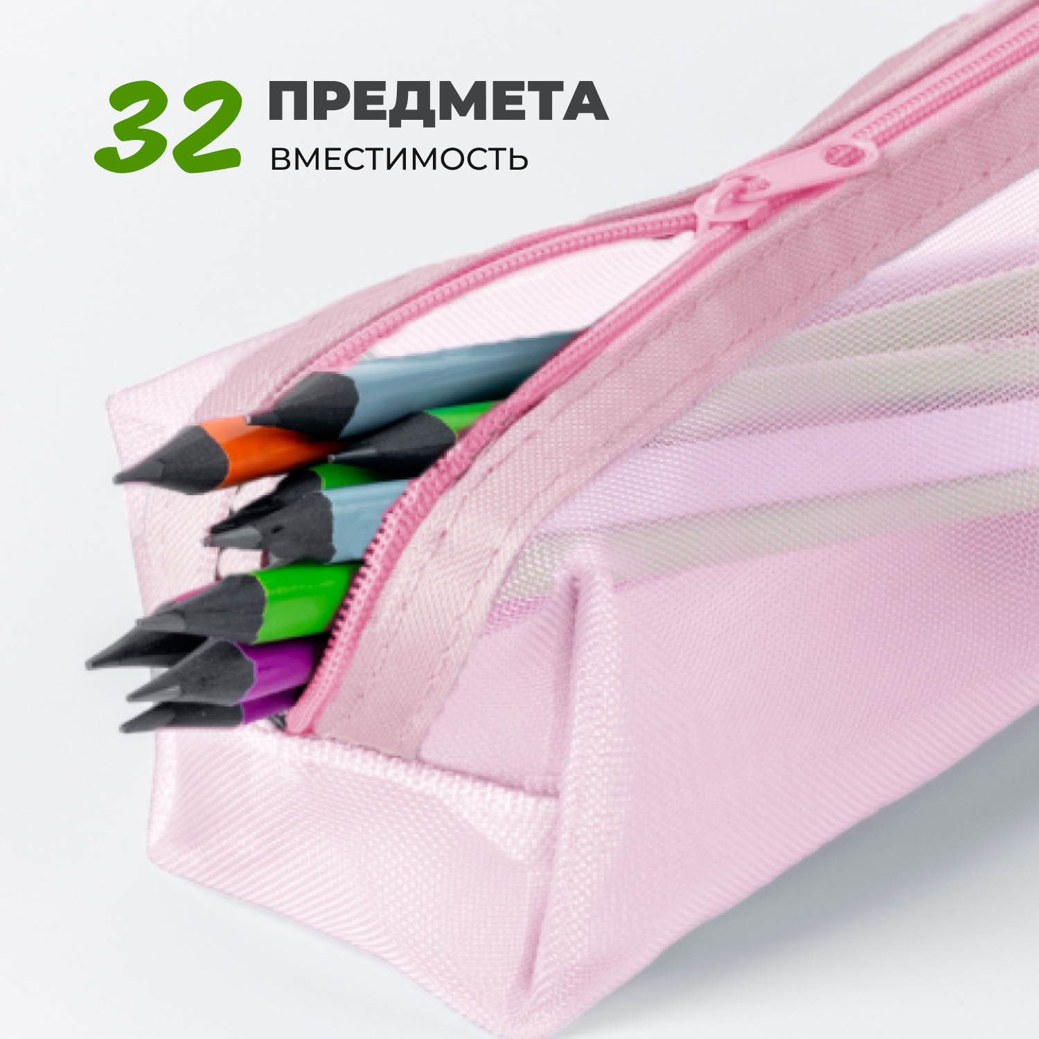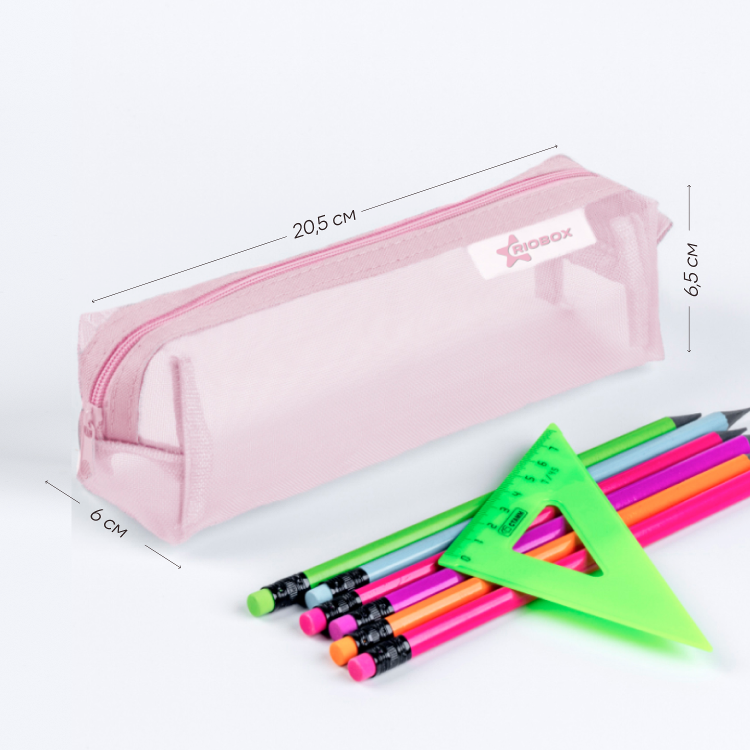 Пенал для девочек в школу RIOBOX, вместительный подростковый органайзер в сетку для карандашей и ручек, универсальный с 1 отделением, розовый с молнией