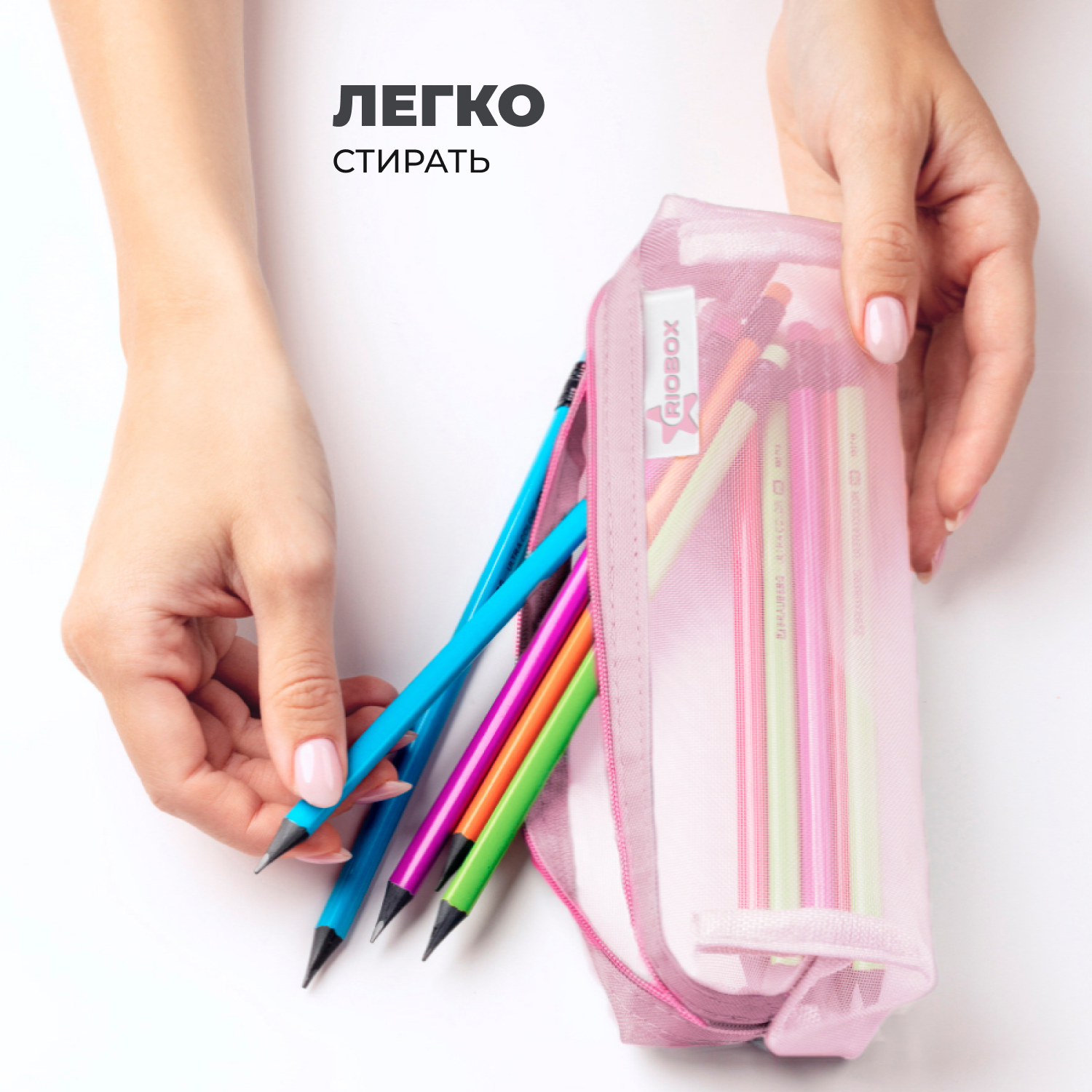 Пенал для девочек в школу RIOBOX, вместительный подростковый органайзер в сетку для карандашей и ручек, универсальный для школьников с 1 отделением, розовый с молнией, пенал косметичка