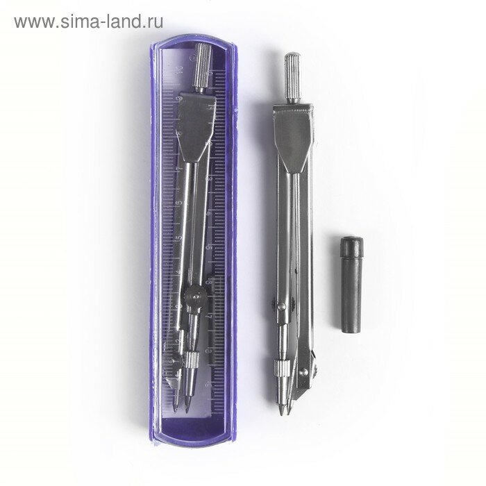 Купить Циркуль металлический 110 мм, в пластиковом пенале, крышка - линейка, с грифелем, микс
